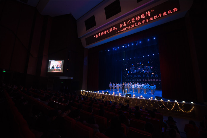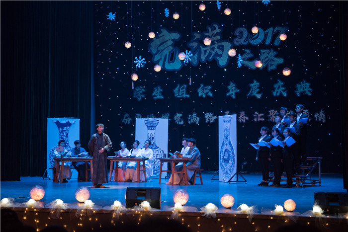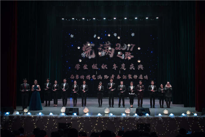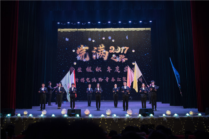 12月27日,在我校院领导、各职能部门老师代表、书院老师、团委老师和校院两级学生组织成员共同的见证下,2017完满之路“奋勇拼搏完满路,青春汇聚移通情”学生组织年度庆典在缤果大剧院圆满落幕。