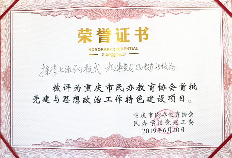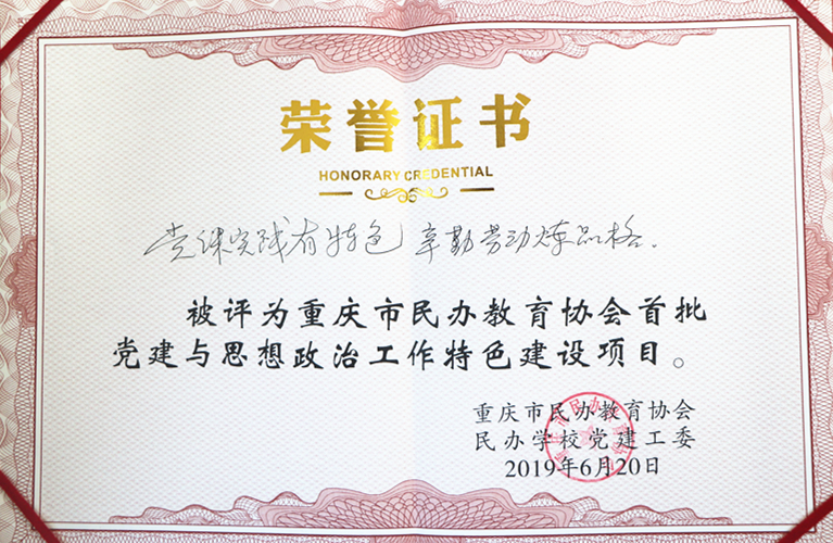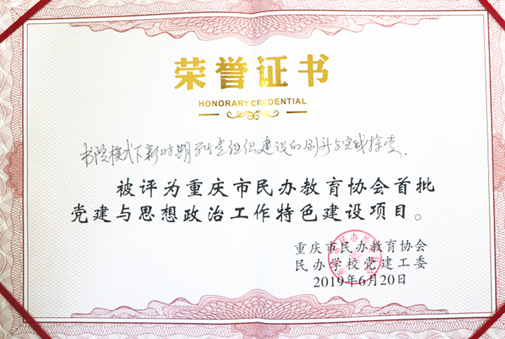 在中国共产党成立98周年、新中国成立70周年之际,在重庆市民办学校党的建设与思想政治工作交流会上,我校党委组织申报的《探索七维学习方式 构建党员学习教育新格局》等3个项目被评为重庆市民办学校首批党建特色建设项目。两个党建项目《书院模式下新时期学生党支部建设的创新与实践》《“德法兼职”理念下应用型本科院校党建工作路径与方法研究》获市教委立项。党委组织宣传部部长、宣传新闻中心主任苏述庚荣获“全市教育系统优秀党务工作者”,思政教学部主任邓燕荣获“全市教育系统优秀共产党员”。通信与物联网工程学院梁少峰老师被评为2018年度重庆市高校优秀辅导员。