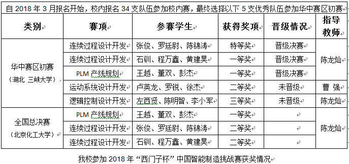 大赛共有来自全国29个省、市、自治区的3129支队伍报名全国初赛,其中参赛教师2153人,参赛学生8963人。在学校各级领导和各部门的关心和大力支持下,参赛师生在没有比赛设备的情况下积极备赛,取得优异成绩实属不易。比赛正值盛夏,参赛师生克服高温炎热天气,精心备战,经过刻苦训练,无数个通宵调试和修改,最终不负众望,在7月底三峡大学举办的华中赛区初赛中取得特等奖、一等奖等多个奖项,其中连续过程设计开发赛项两个团队均以满分成功晋级决赛,成为全国除主办方院校以外为数不多的同一赛项晋级2支队伍的高校。