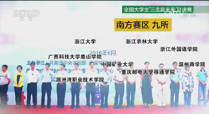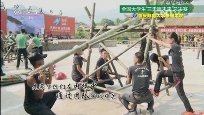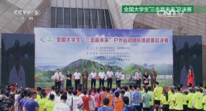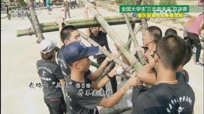 2017年6月6日8:30,中央电视台体育频道(CCTV5)、中国网络电视台对“三走赢未来‘全国大学生户外运动团队总决赛’”(下文简称:“全国三走赛”)展开实况录像播报。我校户外拓展队在比赛中与众高校决战金顶,参赛实况获得央视特别报道。