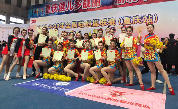 11月21日-24日,2019-2020年全国啦啦操联赛(重庆站)在渝北中学举行。我校Twinkle啦啦操队的24位队员在教练王尚傲老师的带领下不畏强手、再创佳绩,最终荣获三个项目的第一名,两项第二名和一项第三名的优异成绩以及代表中国参加2020年国际啦啦操赛事的资格,同时还获评“全国啦啦操星级俱乐部”的荣誉。