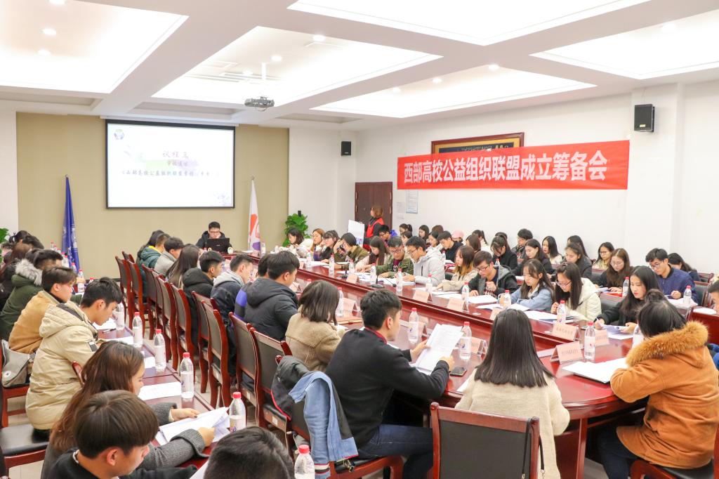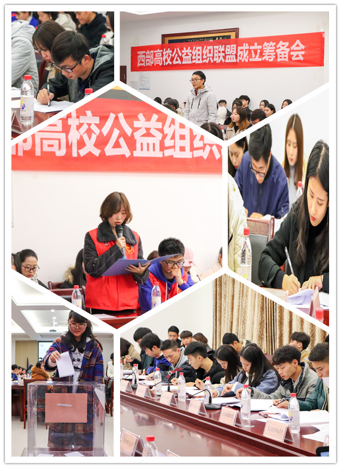 我校青年志愿者联合会在经过前期充分的准备后,西部高校公益组织联盟筹备会于2018年11月24日16:00在行政楼A栋107会议室隆重举行。会议之初,由西部高校公益组织联盟介绍及各高校公益组织负责人的自我介绍。随后,会议审议通过了《西部高校公益组织联盟章程(征求意见稿)》,各高校公益组织负责人签署了《西部高校公益组织联盟发起书》,选举产生了西部高校公益组织联盟第一届主席团体单位、副主席团体单位,审议通过了《西部高校公益组织联盟·移通宣言》。我校青年志愿者联合会当选西部高校公益组织联盟第一届主席团体单位,四川师范大学、云南师范大学、西北师范大学、贵州财经大学为副主席团体单位。至此,筹备会议圆满结束。