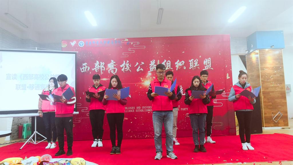 公益乃社会发展之基础,民族进步之标志。为进一步团结西部高校公益组织,建立民主议事、共学共建、抱团发展的长效机制。在中国扶贫基金会、免费午餐基金、人民网重庆公益频道指导下,我校于2018年11月24日举办了“西部高校公益组织联盟成立仪式暨交流酒会”。