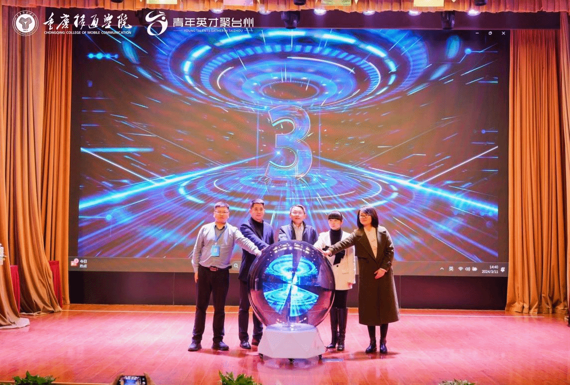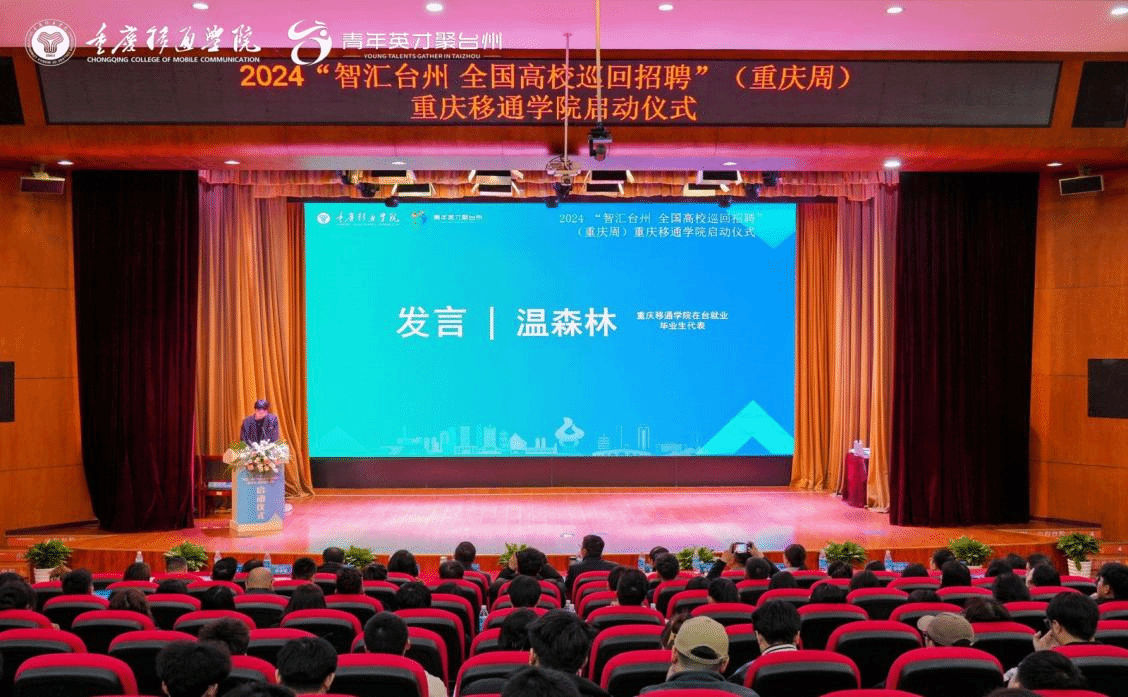 下午,重庆市大学中专毕业生就业指导服务中心党支部书记、主任唐雪平,台州市路桥区相关领导,台州市30余家企事业单位代表,我校副校长、各二级学院院长、副院长,老师代表及学生代表在下里巴人剧场召开2024“智汇台州全国高校巡回招聘”(重庆周)——重庆移通学院启动仪式。