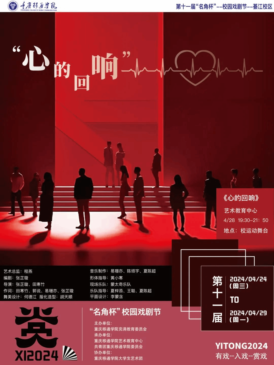 “名角杯”校园戏剧节于2014年3月开始举办,每年一届,为期一周,至今已连续举办十一年。本次綦江校区戏剧节主题定为“赏”戏,以去年主题“入”戏为出发点进行思考,通过去年戏剧节的演出,进入到戏剧的海洋。从“有”戏到“赏”戏,不仅仅是三年艰苦卓绝的校园建设,也是戏剧节从无到有,再到百花齐放的历程。学校坚持不懈开展戏剧节活动,让同学们在认识戏剧、感受戏剧、了解戏剧的同时,丰富学校艺术氛围,拓展学生艺术视野。本次戏剧节将演绎更多戏剧种类,让同学们真正成为戏中人,看戏剧人生,品戏剧魅力,赏生活百态。