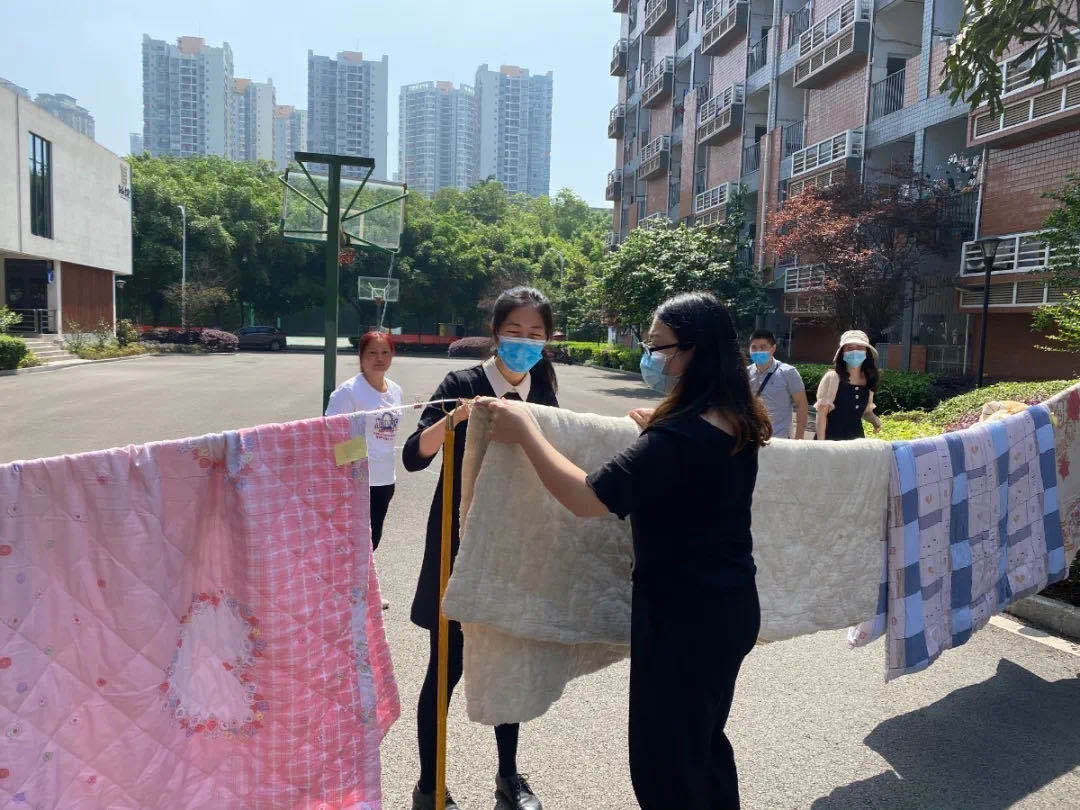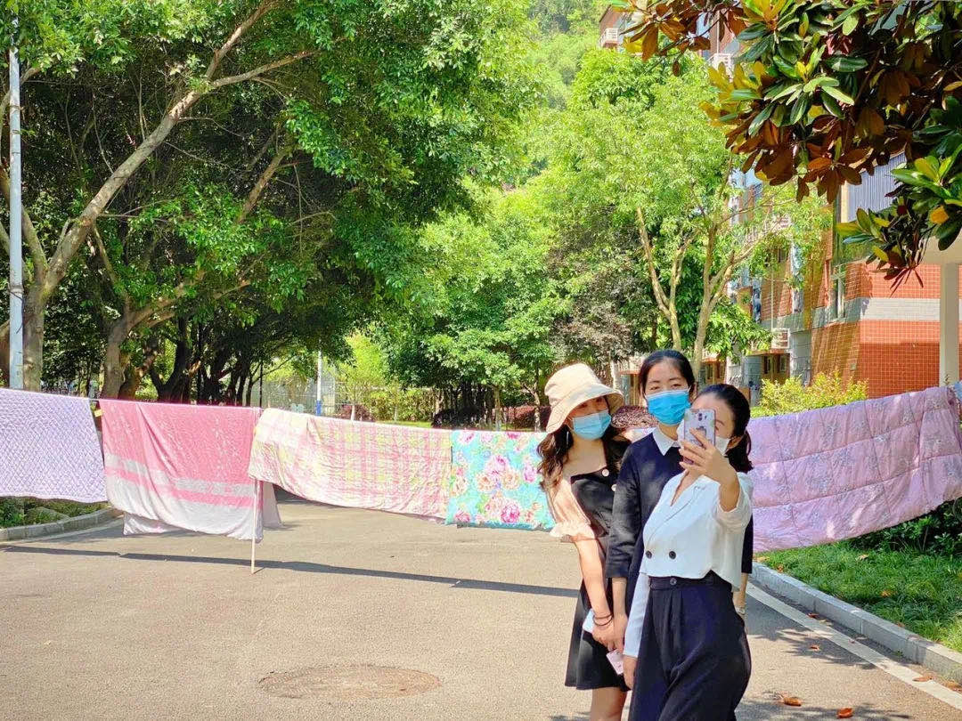 “这么长时间没回学校,说实话挺担心宿舍的卫生问题,没想到老师们会这么贴心,顶着重庆的太阳天去晒被子、收被子。真的很感动。” 提及学校和老师们的各种“远程”服务,淬炼商学院2018级学生刘梨同学,自己也跟辅导员留言申请晒了被子,想给老师们点个大大的赞。