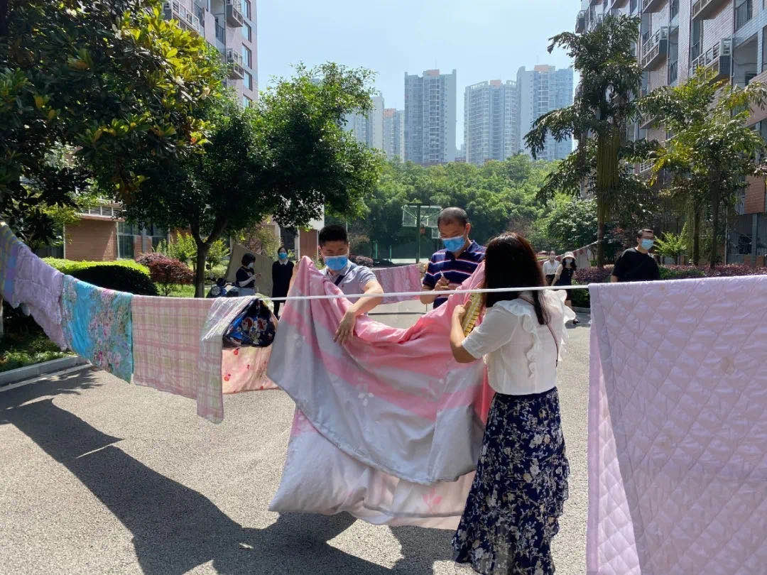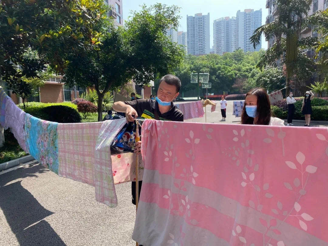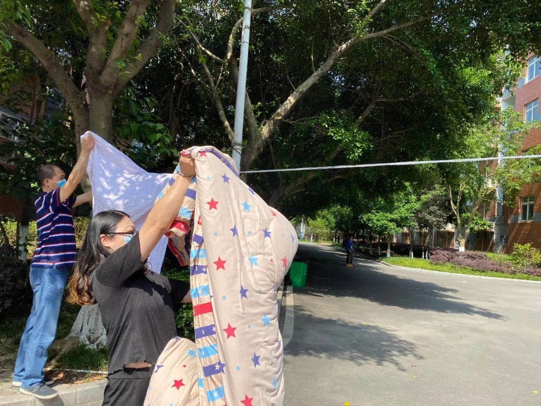 在同一天里,智能工程学院的辅导员老师们也加入了晒被子队伍里。“受疫情影响,在过去的四个多月里,学生的被褥、宿舍的绿植一直处于“尘封”状态,我们也是考虑到学生的需要,同时结合学校疫情防控工作的需要,我们的老师也组织了这次的活动。”智能工程学院学工副院长李巧老师表示到。