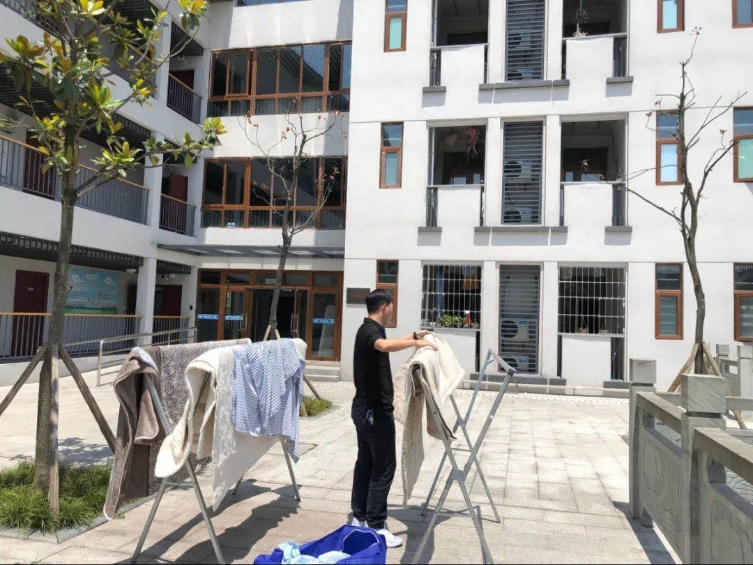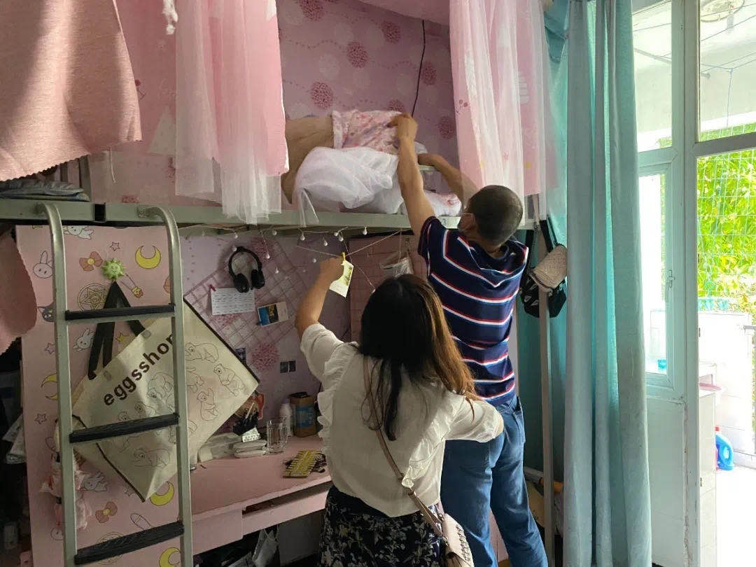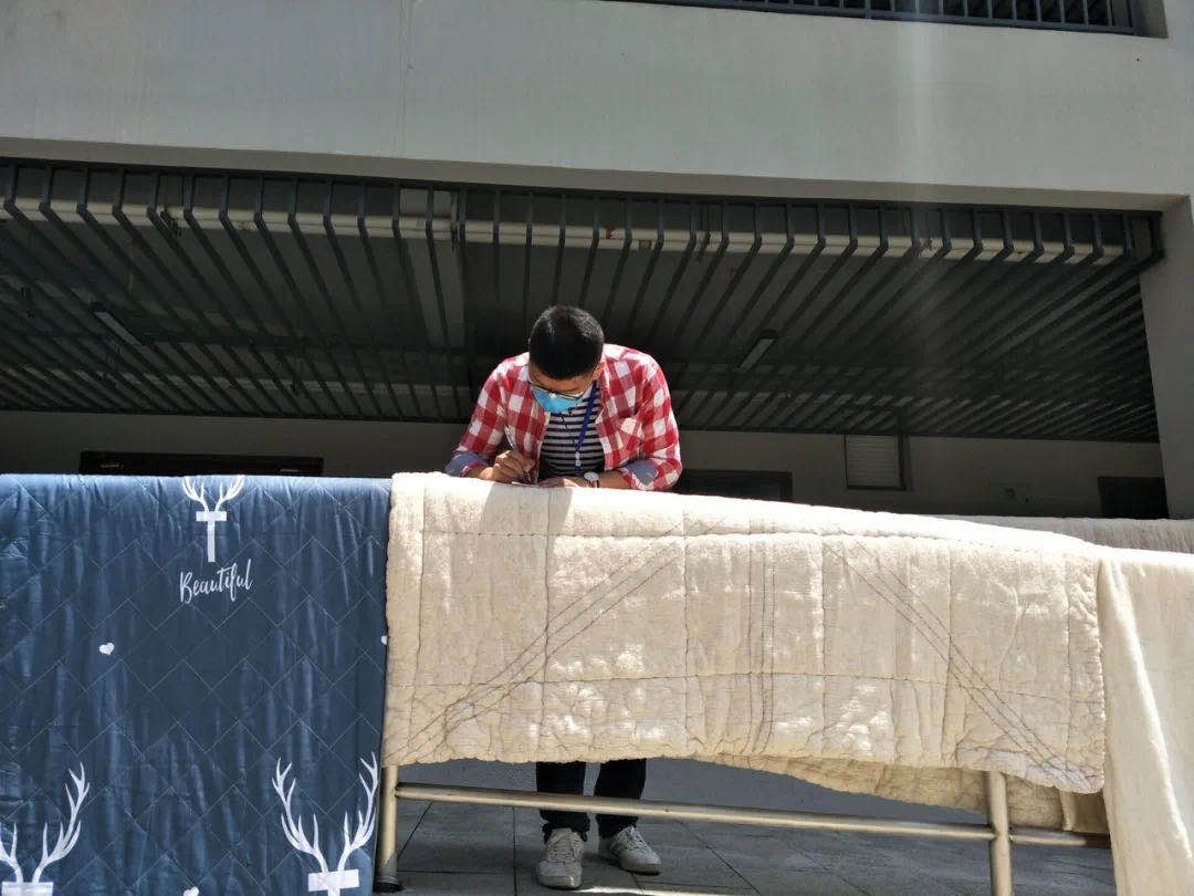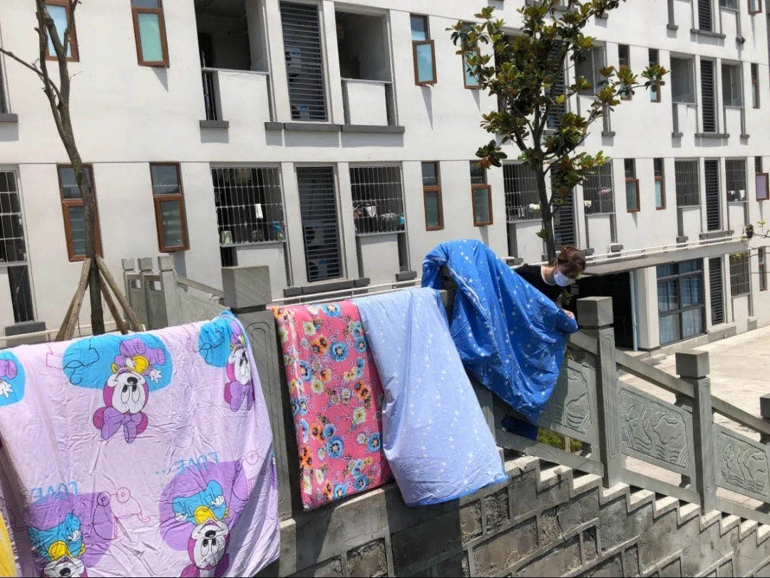 “之前看到有几个学校的老师有帮学生晒被子,别的学生有的,我的学生也要有。” 移通学院淬炼商学院的辅导员们表示。趁着天气好,他们开始帮学生晒起了被子。在晒被子前,辅导员会先在宿舍拍好照片,晒被子的时候贴好标签,记好宿舍号床位号,保证晒完后再放回原处,尽可能恢复原样。