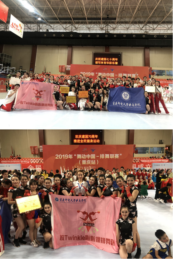6月21日-23日,2019年全国排舞“舞动中国-排舞联赛”(重庆站)在沙坪坝区体育馆顺利举行。我校啦啦操排舞队46名队员在王尚傲教练的带领下参加此次比赛,经过激烈的角逐,我校啦啦操排舞队队员们以团体总分第一名脱颖而出获得青年组规定、自选曲目第一名及团体一等奖的优异成绩及大学组团体三等奖及集体规定自选曲目、单人、双人项目多项前三名的好成绩并获得最佳组织奖。