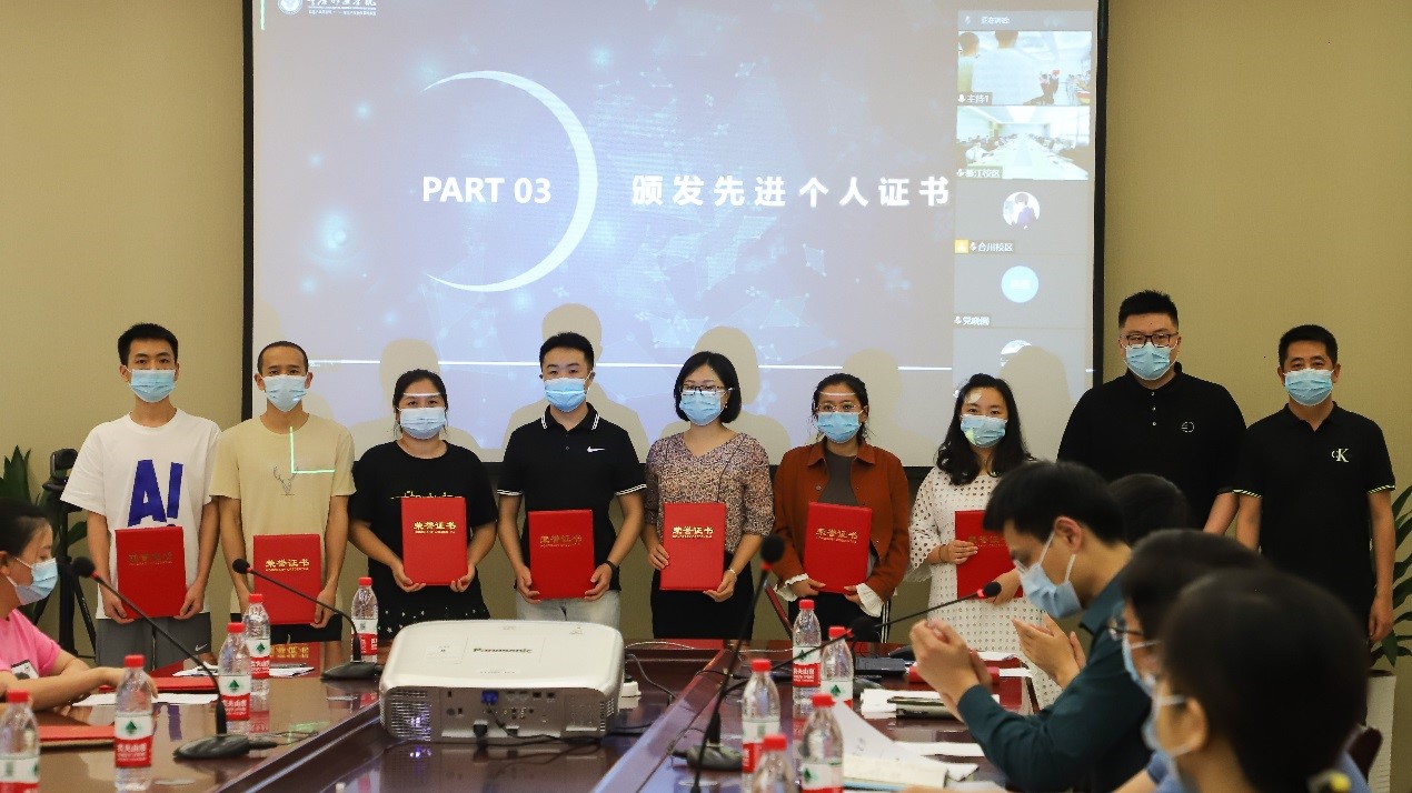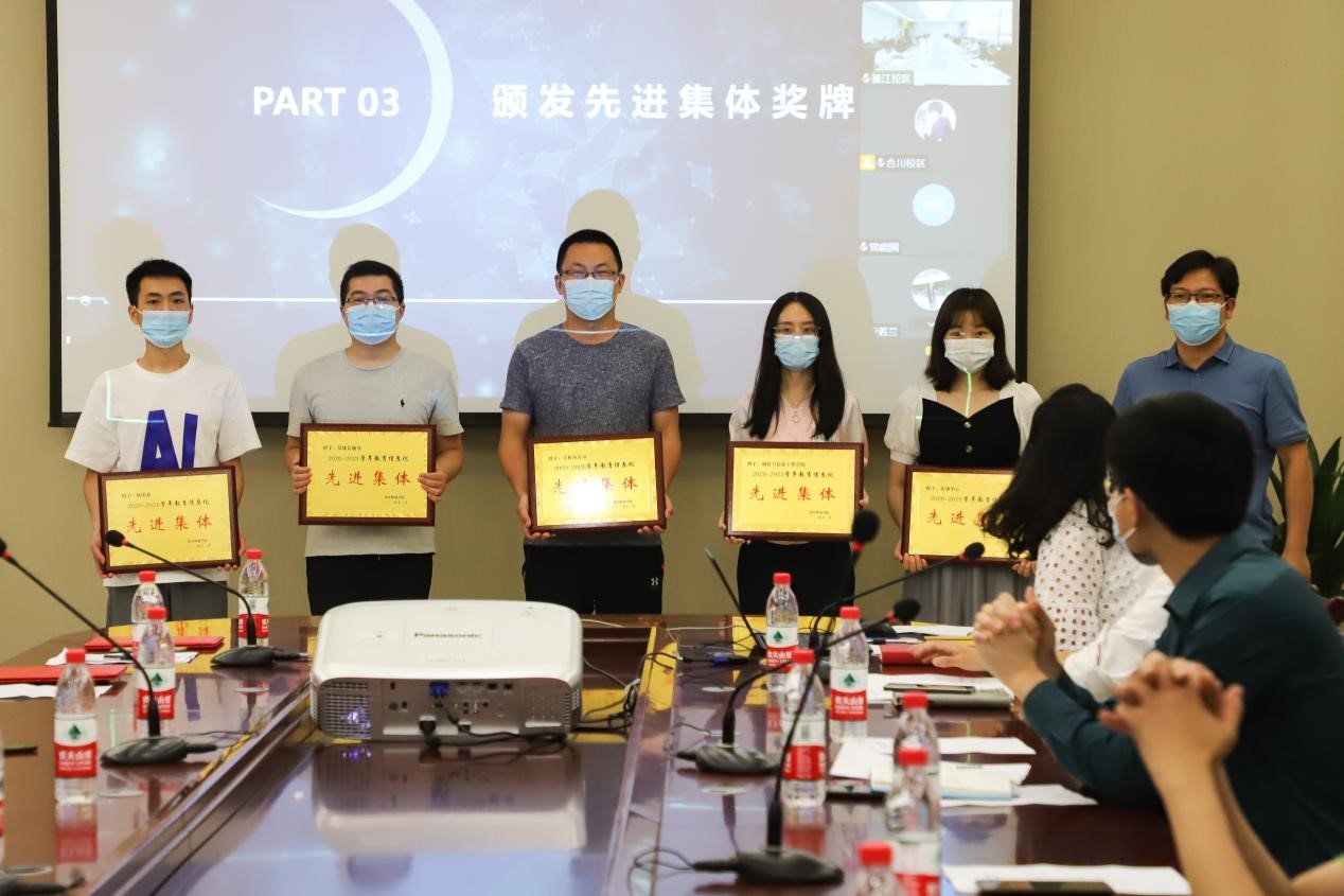 会上,周伟副校长宣读了2020-2021学年教育信息化工作表彰公文及获奖名单。副校长王永周、王永刚,校长助理刘枚、陈仲华依次为先进集体、先进个人颁发奖牌及证书。