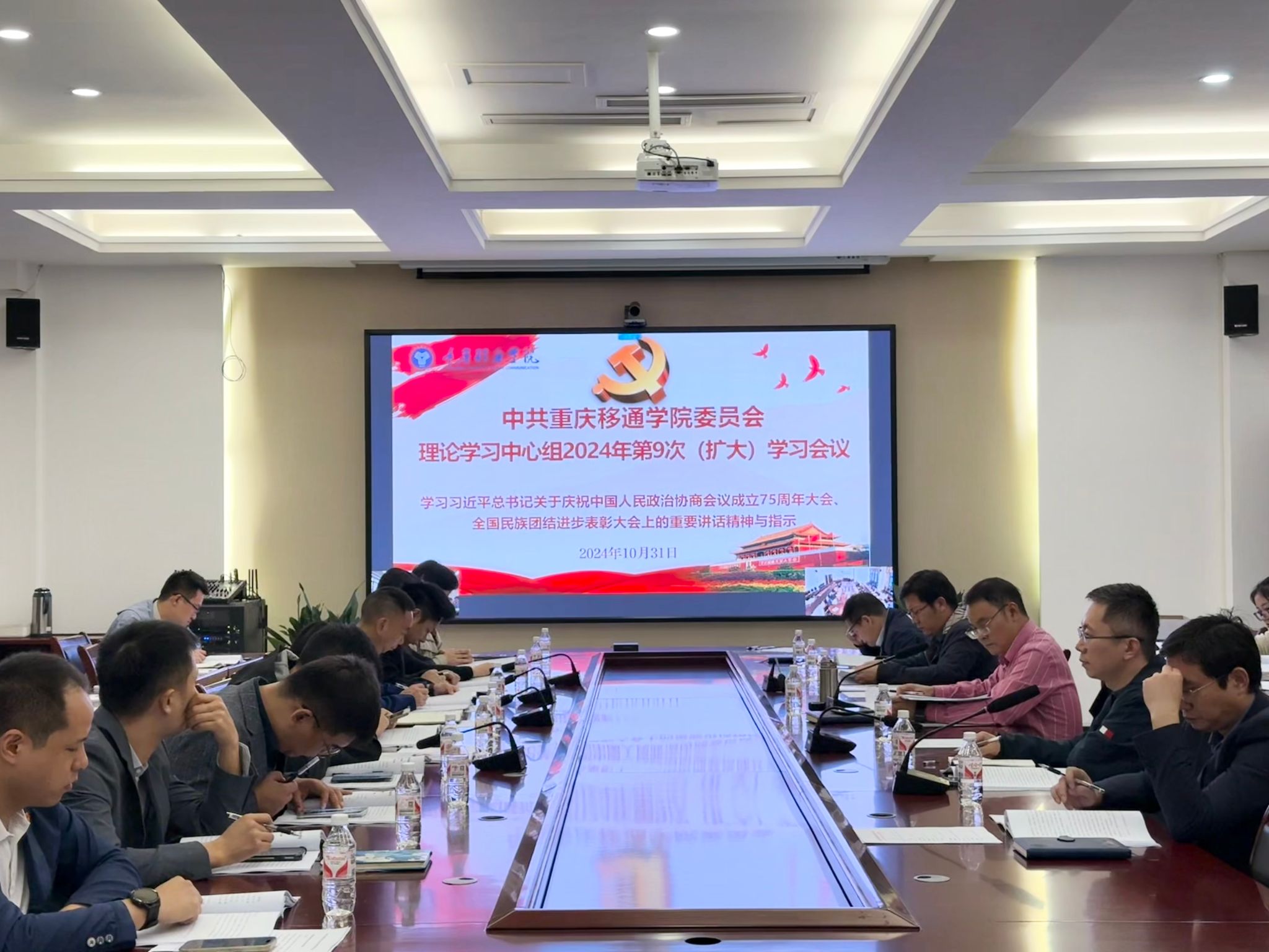 10月31日下午,党委理论学习中心组在行政楼107会议室,围绕“习近平总书记关于庆祝中国人民政治协商会议成立75周年大会以及在全国民族团结进步表彰大会上的重要讲话精神与指示”两个主题,召开党委理论学习中心组2024年第九次(扩大)学习会。校党委书记、政府督导专员何先刚同志主持学习会议,党委理论学习中心组成员参加学习、直属党组织委员代表列席会议,綦江校区线上同步开展学习。