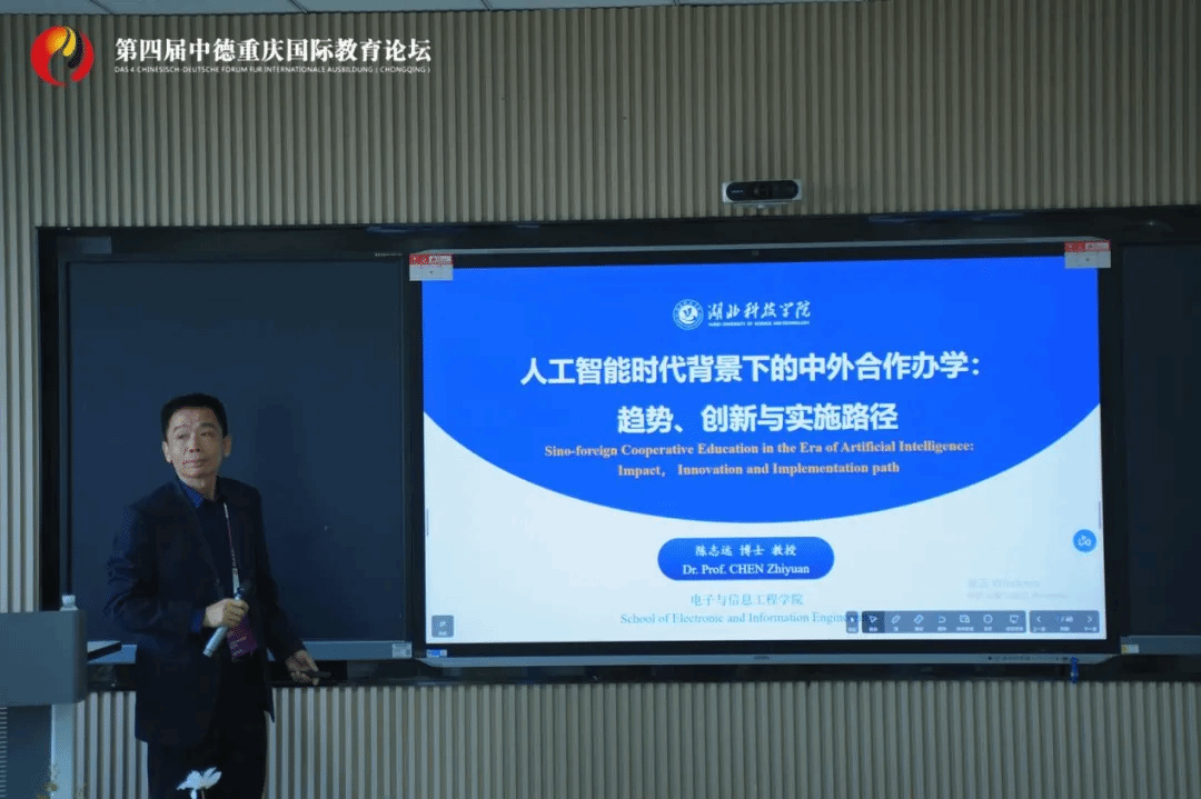 “作为教育开放的关键平台,中外合作办学在高等教育、职业教育以及拓展人才培养途径方面扮演着至关重要的角色。”湖北科技学院电子与信息工程学院院长陈志远深入探讨了中外合作办学的意义、发展趋势,以及人工智能如何赋能中外合作办学的创新、实施路径,并分享了湖科中德合作办学的成效。教育已不再局限于传统课程,随着互联网时代的到来和AI技术的飞速发展,中外课堂的线上线下实时互动以及同步课堂的实施研讨已经成为常态。