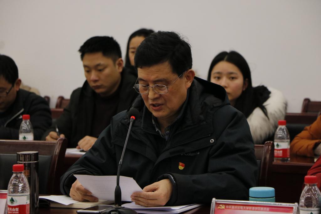 党委书记苏开荣教授针对述职情况进行点评。他讲到,过去一年,各基层党组织书记认真履职尽责,各单位党建工作均取得较好成绩,为学校内涵建设和“信息产业商学院”建设提供了坚强保证。“不忘初心、牢记使命”主题教育取得突出成效,得到市委教育工委第一巡回指导组的充分肯定,获得了广大师生员工的广泛好评。党的建设和学校事业深度融合共同发展,基层党组织战斗力、凝聚力进一步增强,广大党员的先锋模范作用得到更好的发挥。对比往年,此次述职增加了许多亮点,一是高度重视,准备充分。参加述职的基层党组织书记广泛听取意见,全面总结工作、系统梳理问题、积极思考谋划,撰写了述职报告。述职材料准备充分、翔实,既能展现各基层党组织在“不忘初心、牢记使命”主题教育、推进党建工作规范化建设、创新党员活动形式等方面的工作成绩,又能客观反映各单位在基层党建中存在的问题。二是自我剖析,查摆问题。查找问题不再是蜻蜓点水,只查找普遍性问题、共性问题,而是以高度的政治自觉和刀刃向内的勇气,坚持问题导向,全面查找问题;各位书记在自我剖析的过程中,不再找客观原因,而是能够真正把自己摆进去,把工作和思想摆进去;三是重点下移,创新工作。在工作中能够结合各自工作实际,积极探索,丰富工作载体和抓手,落实各项党建工作任务;对于党建工作中党支部建设和党员队伍建设这一薄弱环节,能够做到工作重点下移,打通“最后一公里”,加强党支部规范化建设,强化党员队伍建设;六是成效显著,亮点突出。一年来,从学校党委到基层党支部党建工作获得诸多荣誉。我校党委组织申报的《探索七维学习方式 构建党员学习教育新格局》等3个项目被评为重庆市民办学校首批党建特色建设项目。两个党建项目《书院模式下新时期学生党支部建设的创新与实践》《“德法兼职”理念下应用型本科院校党建工作路径与方法研究》获市教委立项。在学校获得的荣誉中,党员占比高。