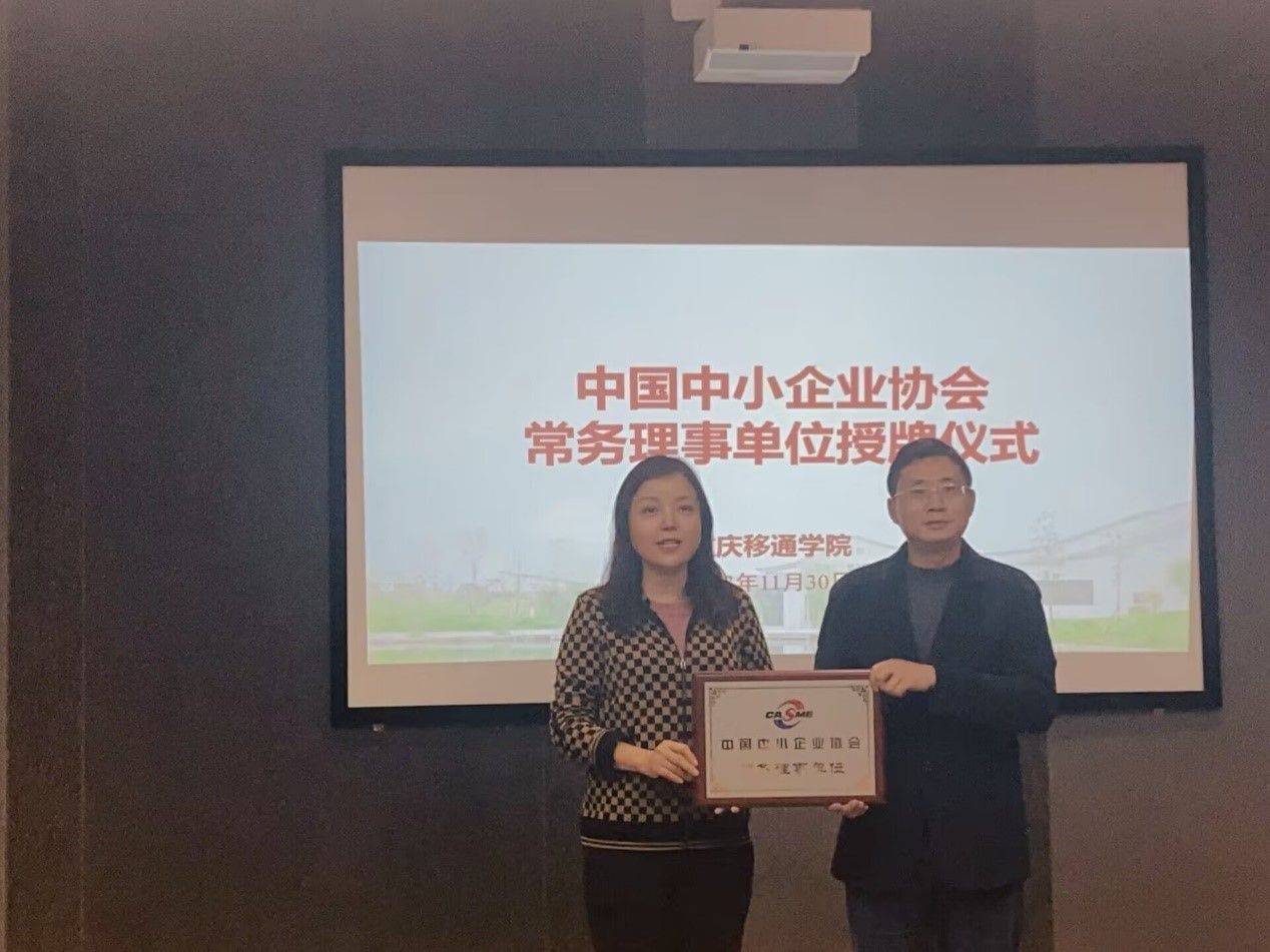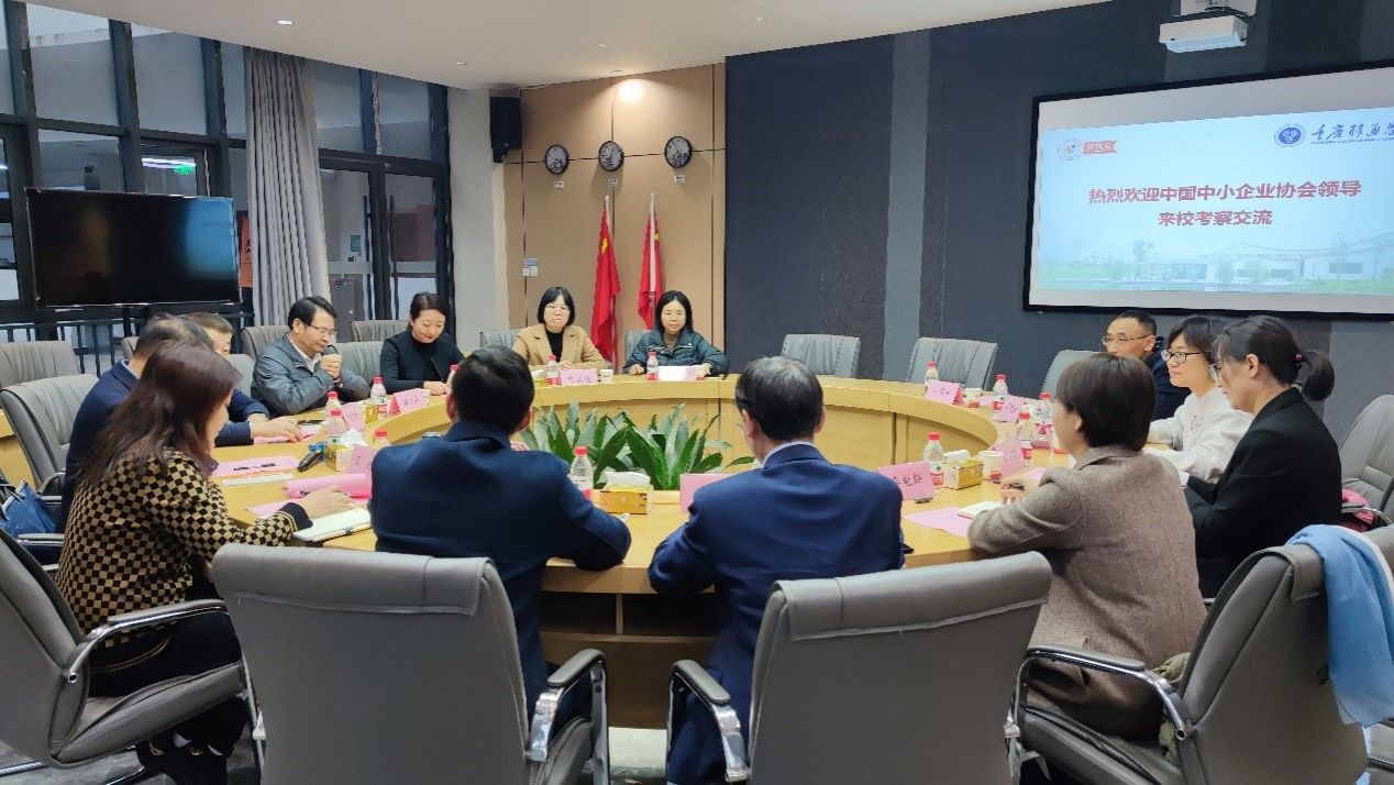 中国中小企业协会常务副会长马彬详细介绍中国中小企业协会发展情况。协会紧跟国家战略,聚焦重点产业,助力地方招商引资和产业发展,在党中央领导下,协会将坚守初心使命,继续开拓创新,推动中小企业高质量发展,为实现中华民族伟大复兴的中国梦作出更大的贡献。她表示,重庆移通学院的办学是极具特色的,也是值得点赞的,也是高度关注学生成长,能培养出中小企业发展需要的经营管理人才的。希望双方加强合作,共同为中国中小企业发展培养更多优秀人才,共同推动中小企业创新发展,为经济社会发展注入更多活力。协会副秘书长周晟安对我校办学定位和特色表示肯定,表示将加强与学校的进一步合作,创新形式资源整合,实现多方共赢。协会培训部主任康继云也在肯定学校办学定位和人才培养目标的同时,希望后续在人才培养、课题研究等方面加强合作。
