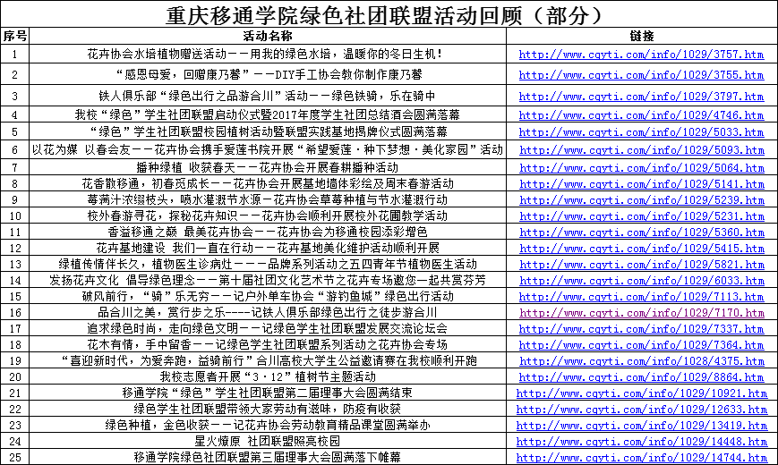 (重庆移通学院绿色社团联盟活动回顾[部分])