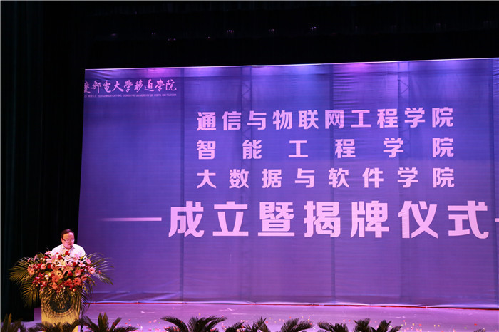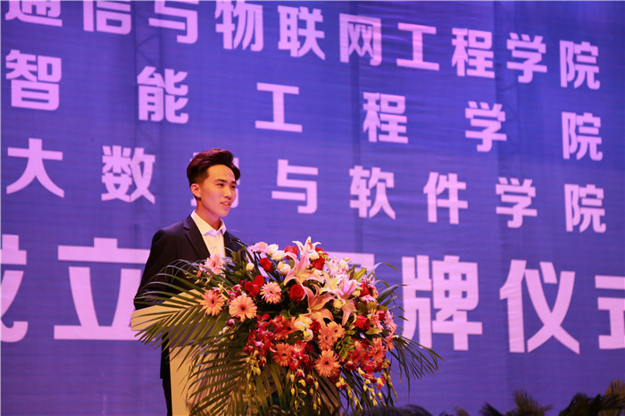 重庆邮电大学移通学院发生了一件大事:学校围绕“信息产业商学院”办学定位,进一步深化三位一体人才培养模式改革,成立了通信与物联网工程学院、智能工程学院、大数据与软件学院。4月18日下午4点,三个二级学院成立暨揭牌仪式在缤果大剧院隆重举行。院长助理、教务处处长刘枚主持大会。