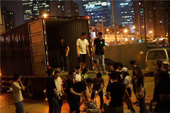 就在八月八号晚上七点半《话剧团的心跳》金刺猬收官表演正式开始,自此以后将会永远记得大家曾在这里一起心跳过。当演出完毕,挥手送别一批有一批观众,当灯光熄灭,音乐声停,大学生话剧团的同学们伴着北京的深夜,霓虹彩灯里将道具、景片等收拾打包。