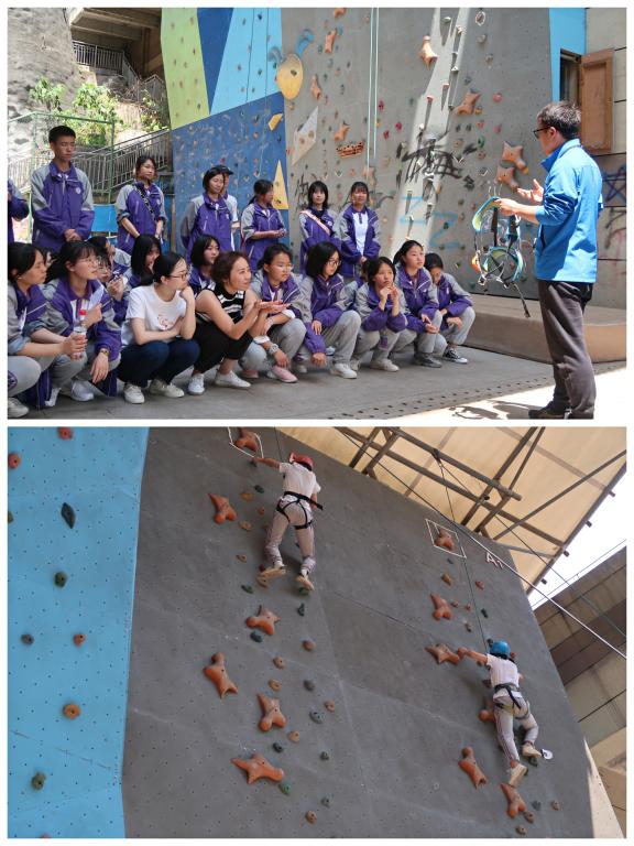 为了让龙门浩师生进一步感受培养特色,龙门浩同学们在素质拓展中心段教练的带领下,体验了我校特色课程攀岩项目。为了增强两校情谊,我院财务管理教研室唐世静老师与李晓敏老师也加入同学们的攀岩队列。烈日炎炎,却丝毫不影响同学们激动的心,其中很多男同学都很快登顶,十分厉害。