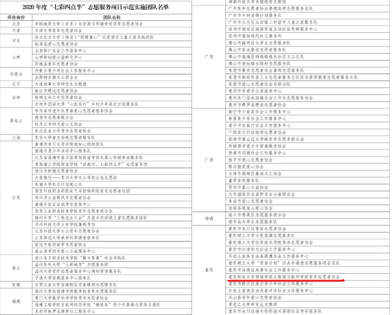 2020年7月底,我校大数据与软件学院青年志愿者协会在校青年志愿者联合会的指导下,从全国623支团队脱颖而出,成功入选“七彩四点半”志愿服务项目示范团队,获得由中国志愿服务基金会、中国平安人寿保险股份有限公司、日本东京海上公司、团中央青年志愿者行动指导中心、中国青年志愿者协会秘书处给予颁发的2万元支持资金。
