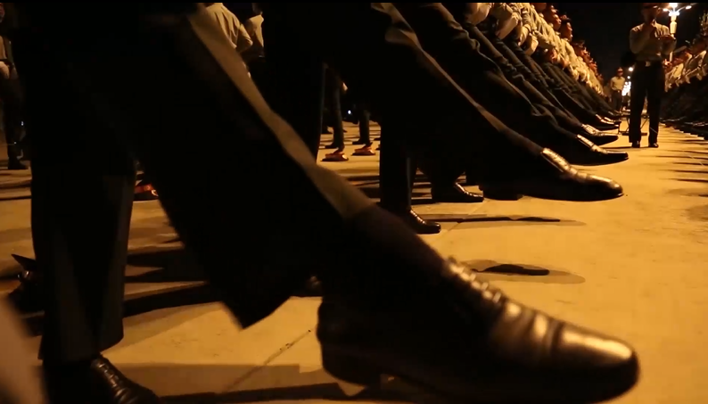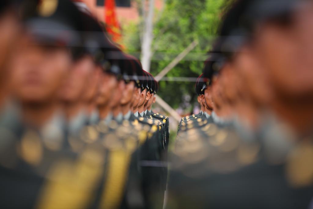 加入阅兵以后,训练强度陡然加大,雷熠轩回忆道,“我们徒步方队日均步行21公里,要求是踢百米不松一口气,走一圈不偷一步懒,基本上训练的衣服一天要换三套,每一套都是汗水湿透,训练间隙我们就拧一拧衬衫上的水。踢腿训练是每天必不可少的科目,每天上百次的训练,我们的皮鞋大概每个人踢坏了4-5双。练枪法的时候是最最血性的时候,一开始我们不戴手套,枪的准心,握把锋利的地方都会刮伤我们,那时候我们去训练,每人必备创口贴,一天下来用完一板,就这样还是血流的满手,后来枪法熟练了,手上有老茧了。端枪训练我们日均4个小时,枪头挂一个水壶,小马扎什么的,训练完吃饭筷子都拿不起来,都是拿个馒头啃就完了。我们一周训练强度是“五加二”“白加黑”,尤其是我们方队,全阅兵村出了名的刻苦,早上5点半第一个出操的是我们陆军,晚上11点最后一个收操的还是我们陆军,回到宿舍我还会自己加班练半小时军姿,巩固我的上体。”