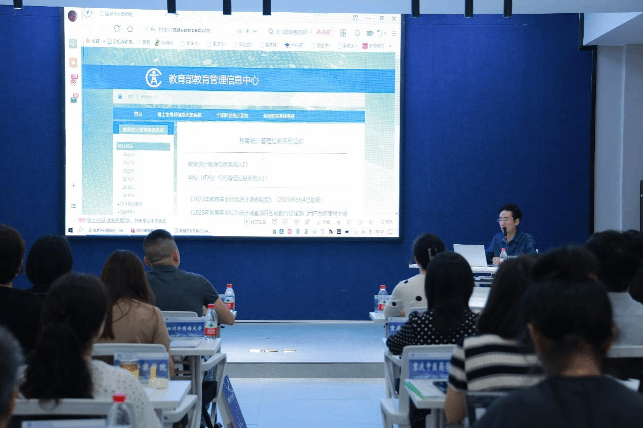 本次会议对教育统计管理信息系统、教育事业统计工作综合调查制度等内容进行了培训。其中,教育事业统计工作综合调查制度培训会由我校发展规划与科研处刘建川副处长主讲。会议期间,学校组织参会人员参观了綦河书院、公共大数据重点实验室等。