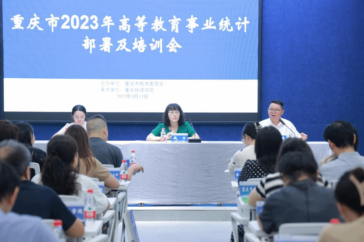 9月13日上午9点,由重庆市教委组织举办的2023年高等教育事业统计工作部署及培训会在重庆移通学院綦江校区观涛报告厅召开。重庆市教委发展规划处副处长魏玲、重庆移通学院常务副校长王永周,重庆大学、西南大学、西南政法大学、重庆邮电大学、重庆师范大学、重庆工商大学等在渝高校教育事业统计有关人员共计110余人参会。