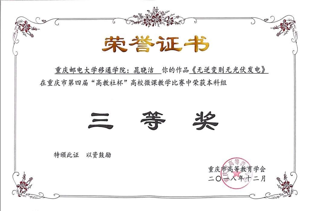 12月7日,重庆市第四届“高教社杯”高校微课教学比赛获奖名单正式公布,智能工程学院教学团队作品《电力智能控制基础》斩获重庆市三等奖。
