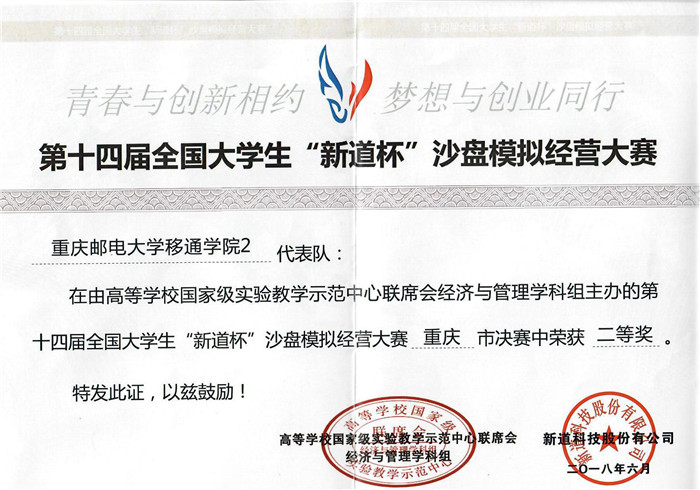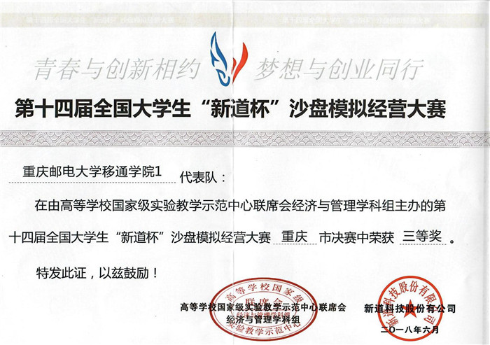 6月7-8日,第十四届全国大学生“新道杯”沙盘模拟经营大赛重庆市总决赛在长江师范学院圆满落幕。本届大赛有西南政法大学、四川外国语大学、重庆邮电大学等本科院校和部分职业院校参赛,共计20所院校38支代表队,230余名师生。我校淬炼商学院两支参赛队伍从校赛中脱颖而出,一路披荆斩棘,最终在重庆市决赛中分别取得了二等奖和三等奖的好成绩。