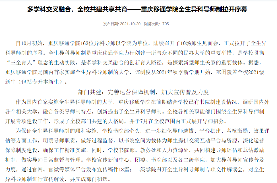 下一条:《重庆日报》“教育观察”版头条刊登我校多元导师育人教育情况