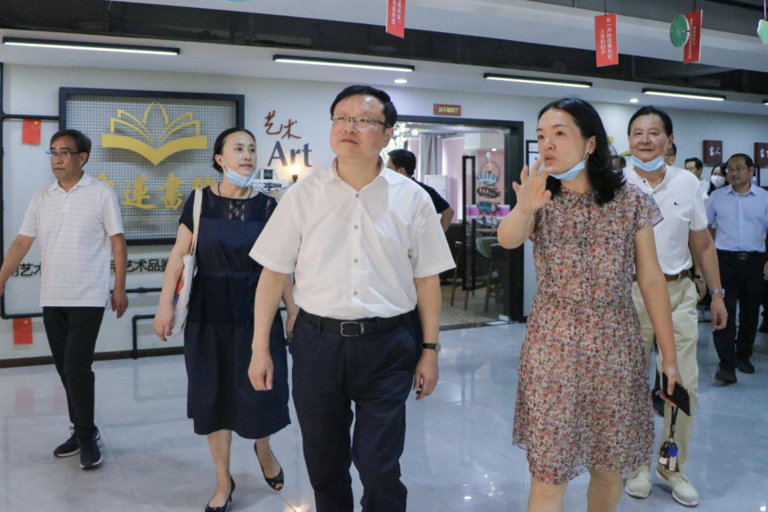 在爱莲书院,王征副校长向屈谦副市长汇报我校“四位一体+双院制”的人才培养模式,他对我校优美的校园环境和独特的人才培养模式给予了肯定与赞扬,他希望我校能够在保持特色的基础上加大发展力度,将移通独有特色做到极致。