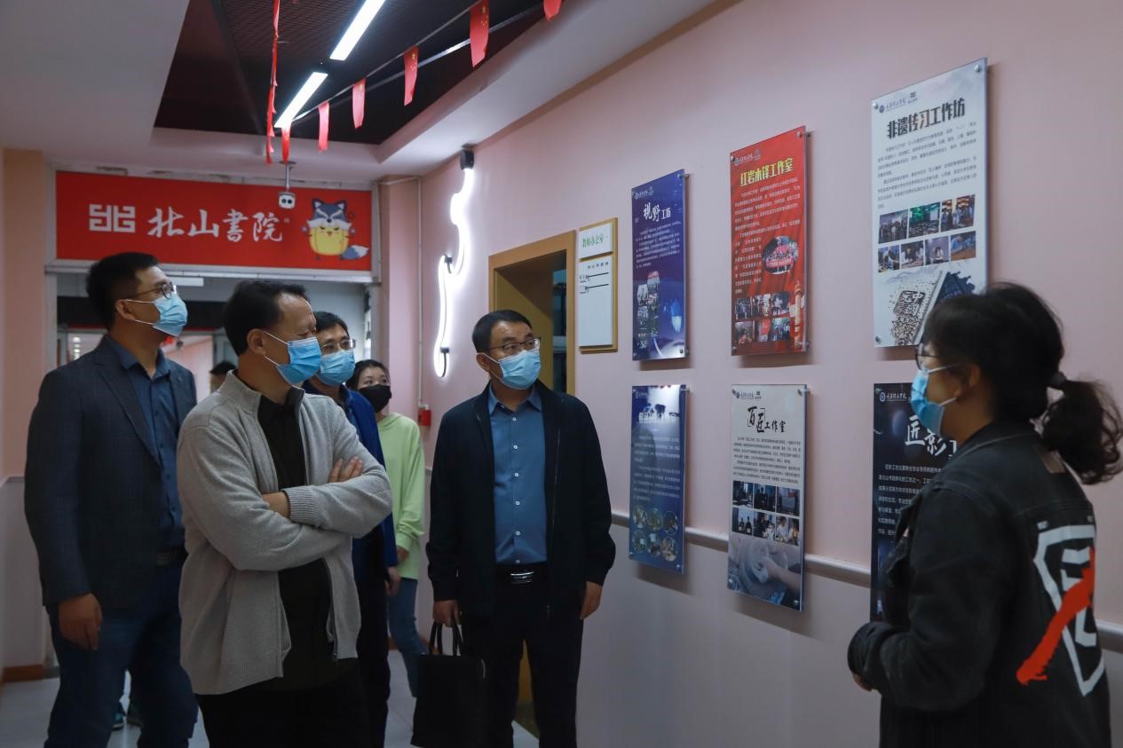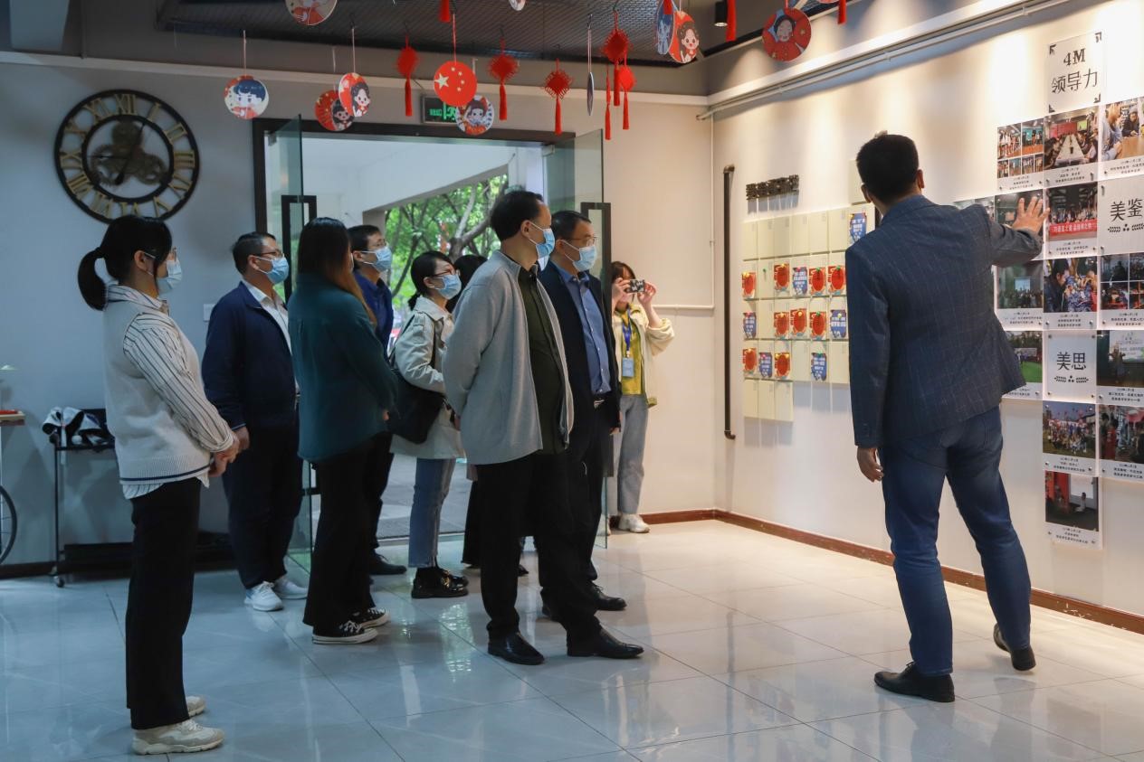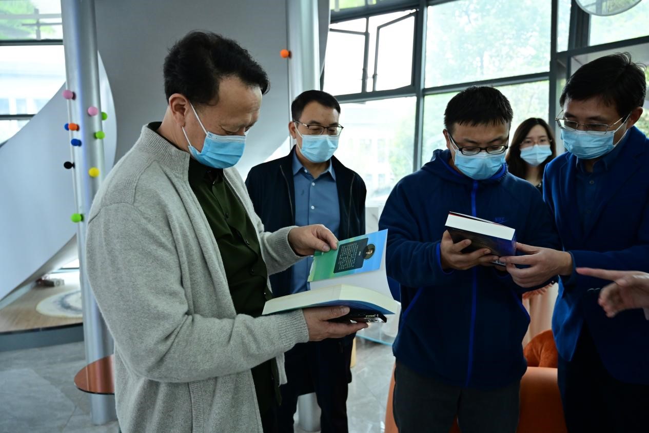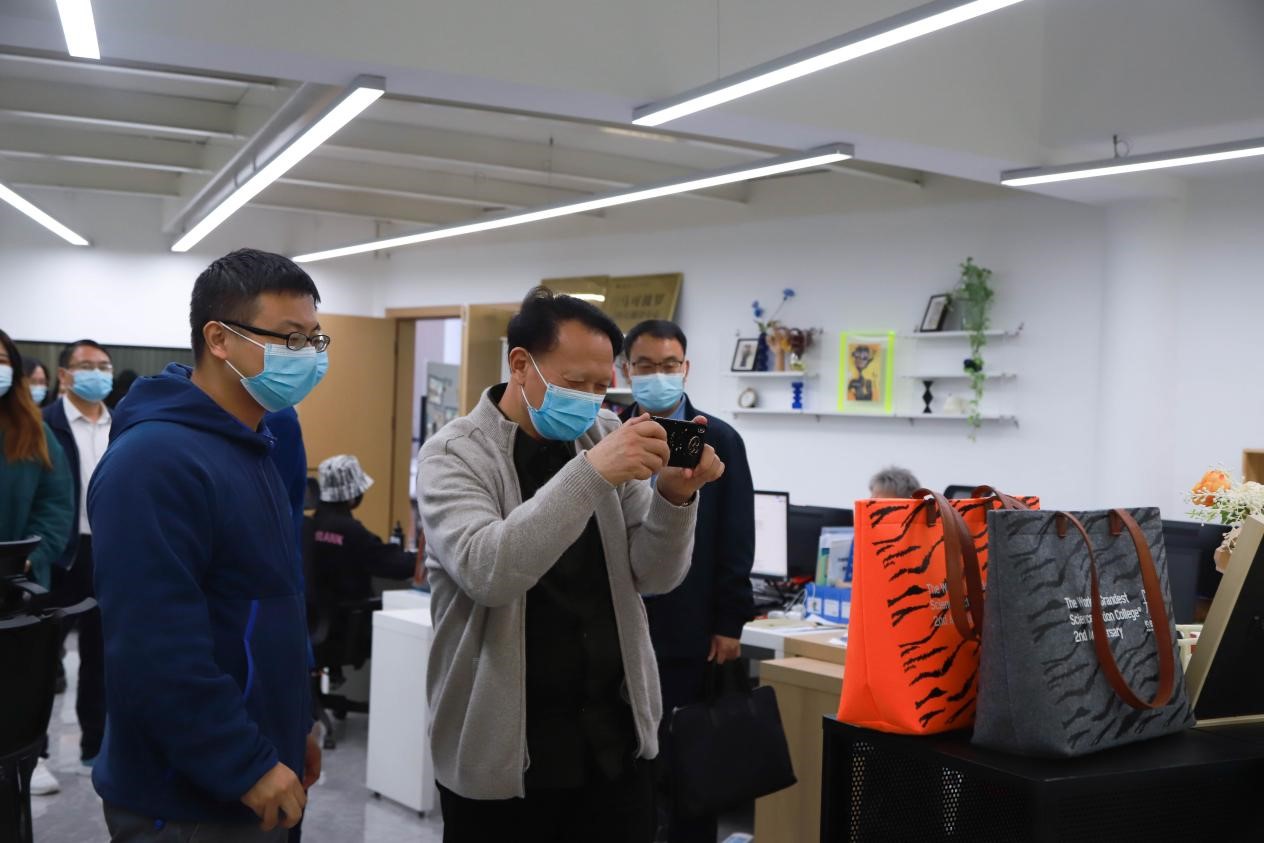 李富强一行先后参观了远景学院、钓鱼城科幻中心、爱莲书院、北山书院、南湖书院,详细了解了学校特色教育及书院制建设。李富强对我校相关建设给予极高评价,他认为移通学院舒适大气的育人环境、超前创新的育人模式值得向全国推广宣传。他还不时掏出手机拍照、亲身体验书院功能室,记者们仔细翻阅科幻作家出版的书籍,了解他们的创作及教学情况。