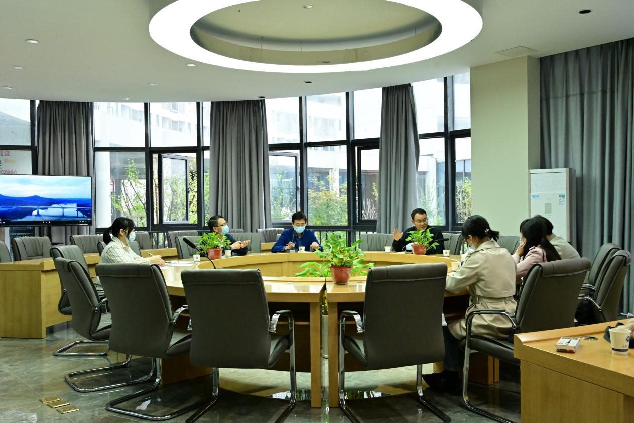 李富强一行、何先刚、张平、苏述庚及宣传新闻中心老师在南湖书院圆桌会议室进行了会谈交流。
