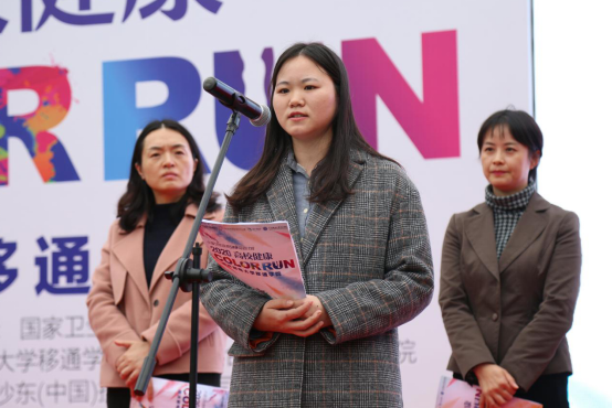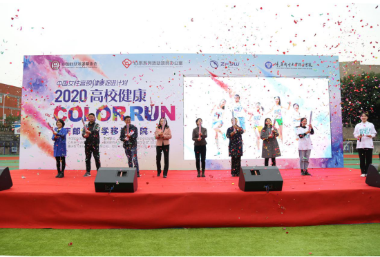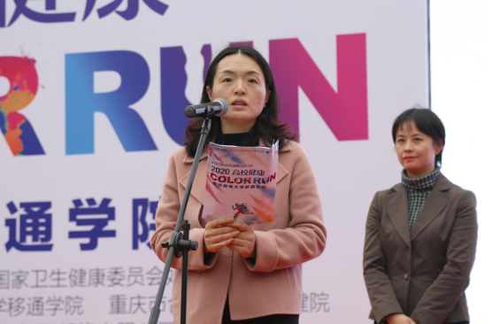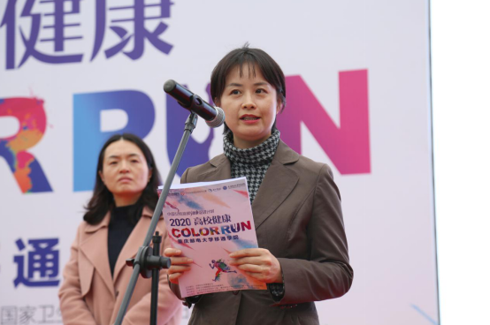 罗冬梅副主任在仪式上提到,自2017年以来,中国女性宫颈健康促进项目办公室加强与高校的合作,通过开展高校大学生健康彩跑、女大学生健康关爱课堂等多种形式的活动,传播女性健康知识,推广健康的预防理念。她表示,今年受疫情影响,关爱自身健康,提高自身的健康意识尤为重要。希望同学们能够积极参与,为实现全民健康,特别是女性健康贡献力量;希望中国女性宫颈健康促进计划能够让更多的女性、女大学生受益。最后,她向现场参赛选手传达了祝福,“希望同学们跑出活力,传递健康!”
