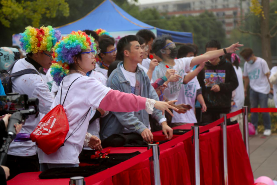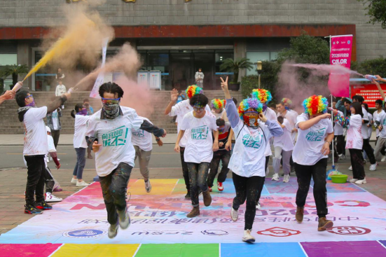 仪式最后,与会领导、嘉宾以及我校学生志愿者代表共同拉响礼花,2020高校健康彩色跑线下活动正式启动。