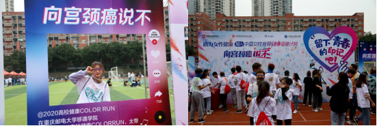 “中国女性宫颈健康促进计划”2020高校健康COLOR RUN活动传递的不仅是欢乐,同时也让更多人关爱女性,提升女性自我健康关注度,共同向宫颈癌SayNo!关注女性健康,重庆邮电大学移通学院在行动!