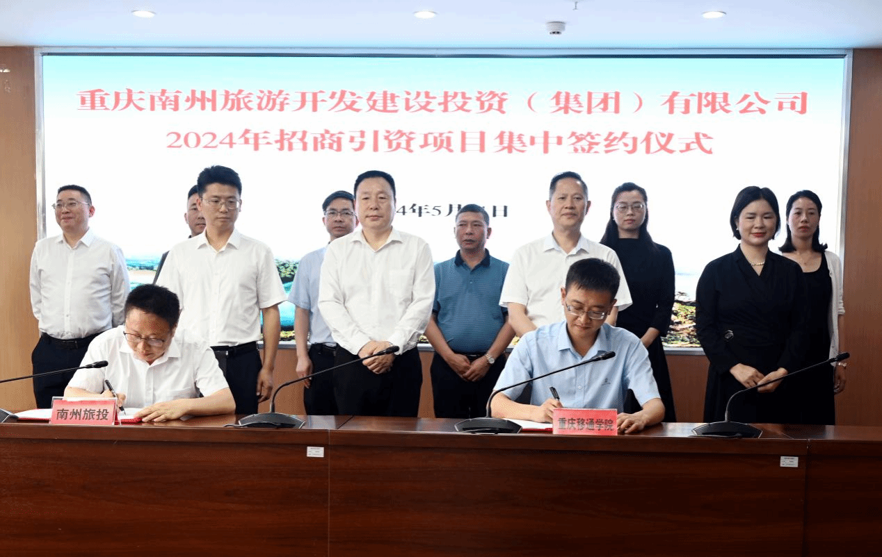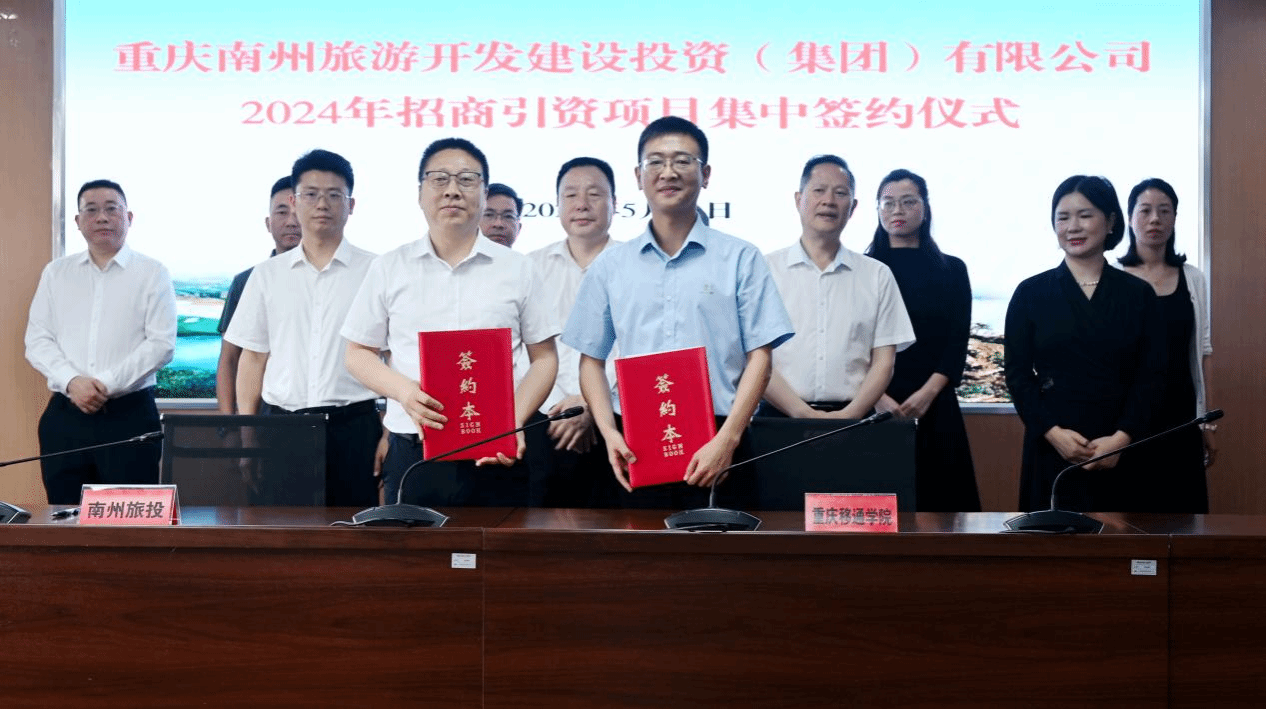 5月21日上午,重庆移通学院与重庆南州旅游开发建设投资(集团)有限公司(以下简称“南州旅投集团公司”)合作签约仪式在南州旅投集团公司会议室举行。联系南州旅投集团公司的区文旅委党委副书记、副主任代洪才,南州旅投公司党委书记、董事长王启德,重庆移通学院副校长李文豹,团委副书记蔡星宇出席。