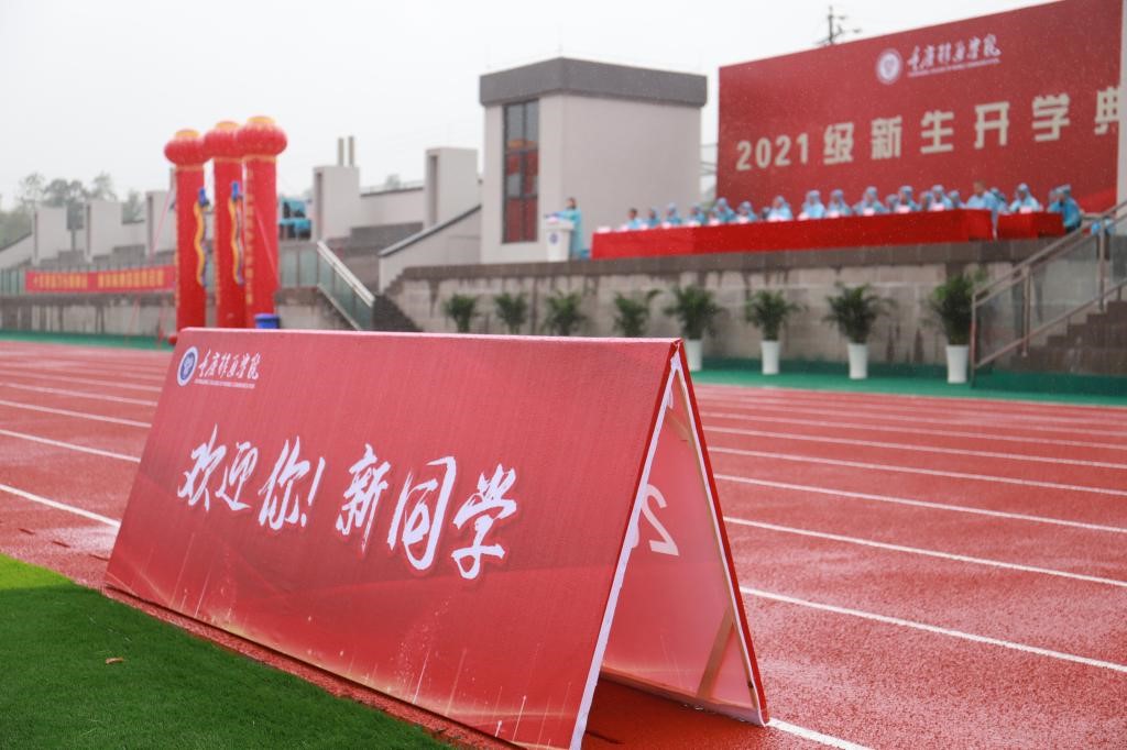 校长张德民教授,党委书记苏开荣教授,教育集团教学总顾问、綦江校区管委会顾问李长萍教授,副校长、綦江校区管委会主任王永周及全体在家校领导,各二级学院和职能部门负责人,校友代表,教师代表,2021级全体新生齐聚綦江校区田径运动场,无畏风雨,共同见证一场盛大庄重的典礼。典礼由我校副校长、綦江校区管委会副主任李文豹主持。