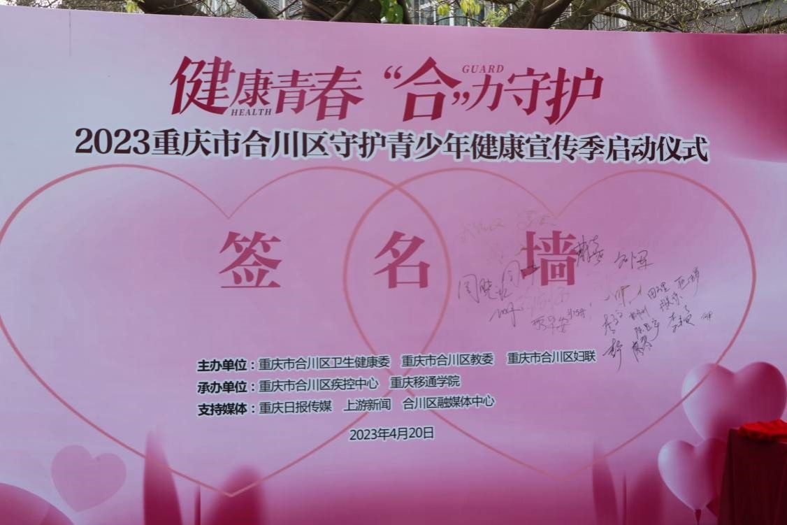 4月20日,由重庆市合川区卫生健康委、重庆市合川区教委、重庆市合川区妇联、重庆市合川区疾控中心与我校团委、基建后勤处共同举办的“健康青春·‘合’力守护2023重庆市合川区守护青少年健康宣传季启动仪式”在学校黄桷树广场、无限多功能厅顺利开展。