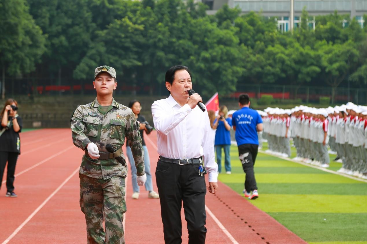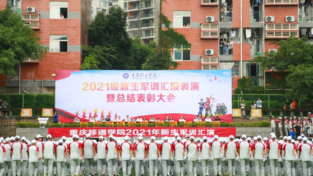秋意翩然而至,凉爽的秋风拂过,为期14天的军训进入尾声。9月17日上午9点,我校2021级新生军训汇报表演暨总结表彰大会在南校区田径运动场顺利举行。2000余名移通新生以蓬勃的朝气接受校领导和教官的检阅,为新生军训画上了完满的句号。合川区人民武装部军事科科长周超强中校,我校校长张德民,党委书记苏开荣,以及全体在家校领导出席大会。大会由副校长周伟主持。