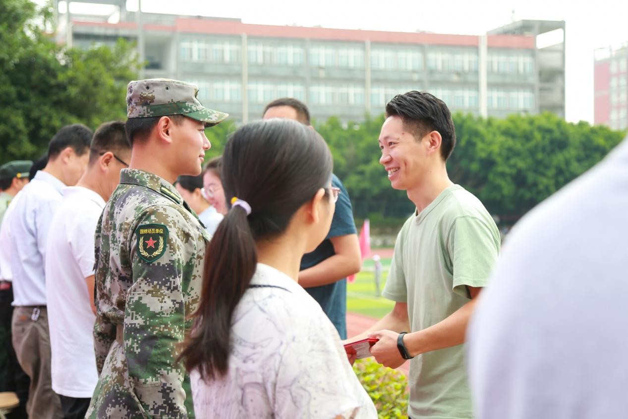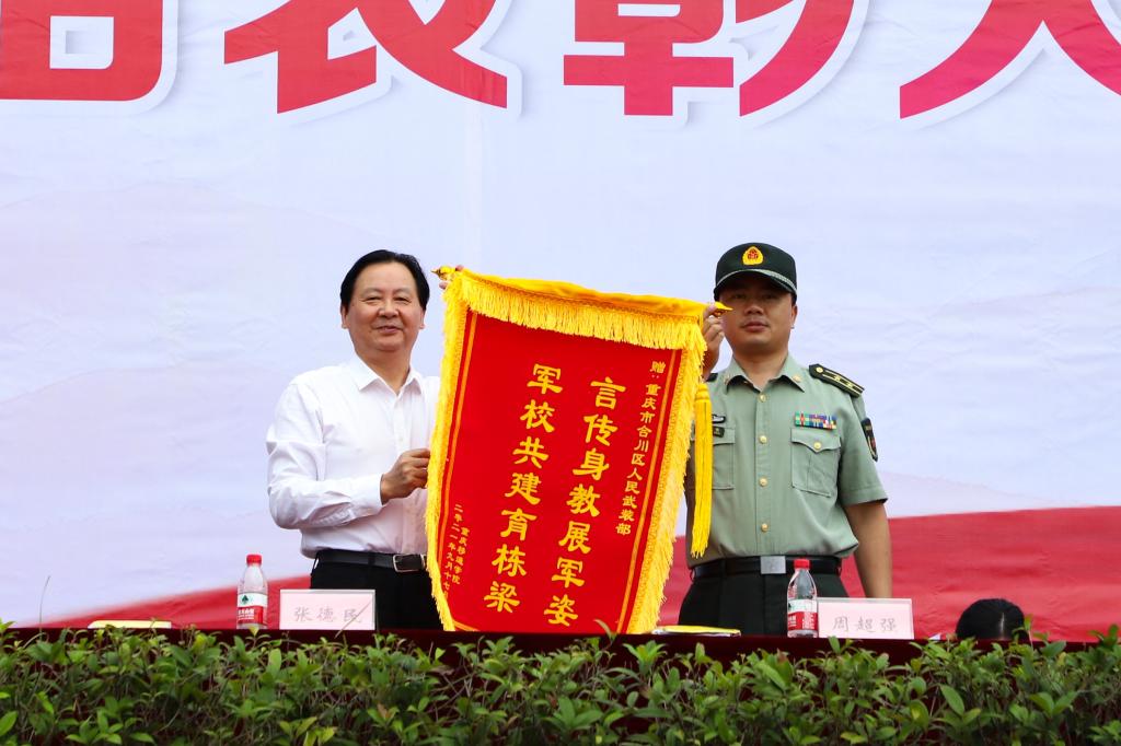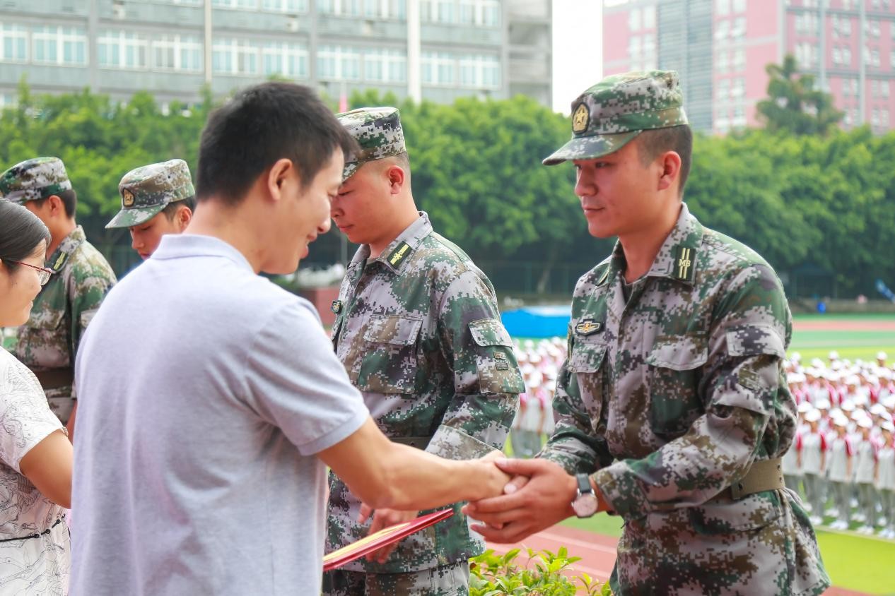 随后,校长张德民教授代表学校向部队赠送锦旗,军事科科长周超强代表承训部队接受锦旗。军训教官整队离场,新生们流露出不舍,为他们鼓掌、敬礼,表达他们对教官的崇高敬意。14天的军训生活中,教官们以严谨认真的态度要求新生们刻苦训练,发扬刻苦耐劳的坚强毅力。