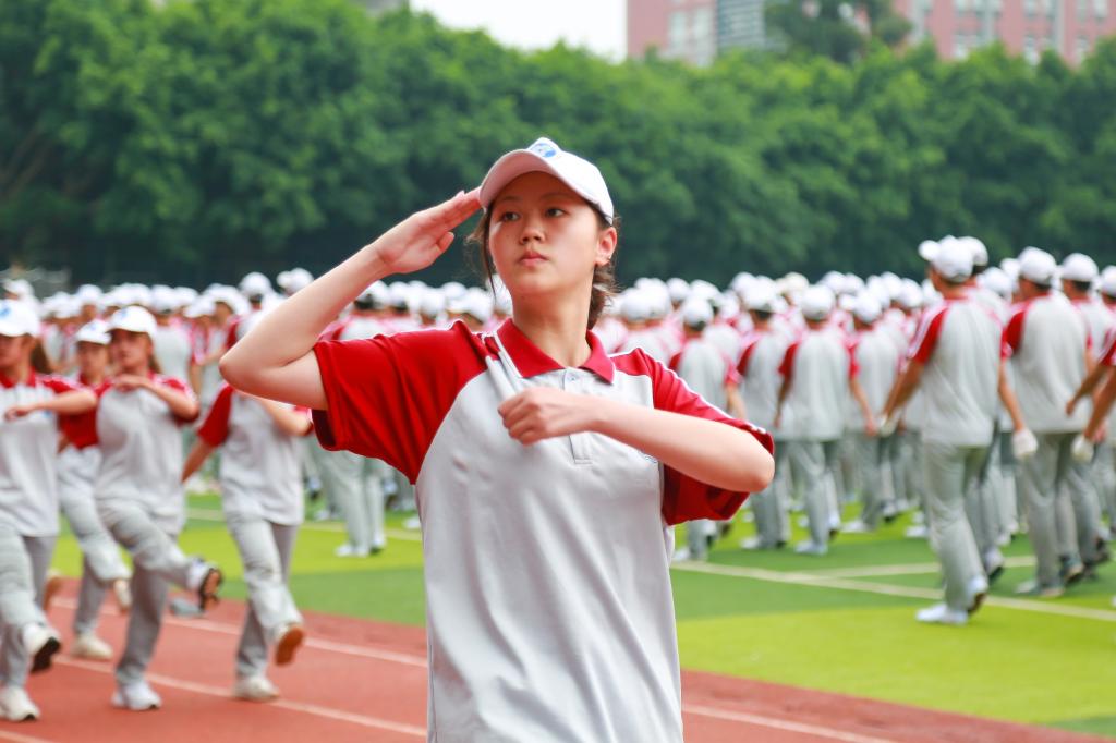 绿荫场上洋溢着青春与活力,新生们穿着干净整洁的服装,站着标准的军姿,昂首挺胸。“所有人已集合完毕,请检阅!”洪亮的声音划破天际,张德民校长在阅兵总参谋长蒋欢的陪同下徒步绕场一周,以同样坚定的声音开始了检阅:“同学们好!”“同学们辛苦了!”军训的刻苦磨炼使得移通新生们更加朝气蓬勃、铿锵有力,“校长好!”“刻苦训练,为校争光!”,嘹亮的声音久久回荡。