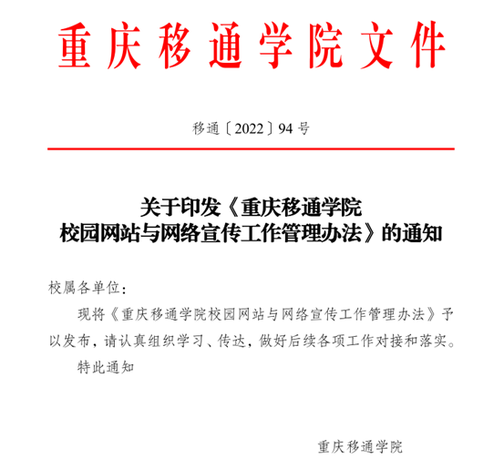 为进一步规范和加强我校校园网站管理,充分发挥校园网站在教学、科研、管理、党建、宣传和思想政治教育工作中的作用,品牌营销与新闻中心成立小组,按周期走访调研各二级学院,交流相关问题,帮助解答疑难,深入了解需求,开展相关培训。在调研后,专门制定《重庆移通学院校园网站与网络宣传管理工作办法》,内容详细规定了学校主页(主网站)内容标准、二级网站搭建要求、二级网站信息审查发布、网站监督和管理等详细标准,定期对各二级网站进行核查,对于不合格的单位直接影响年度新闻宣传先进集体考核评比。同时,积极推进线上OA办公系统,落实各大稿件“三审三校”线上审校,严格把关稿件质量。通过年度走访调研,OA办公系统提升,各二级学院及相关部门发稿较往年更加积极,发稿量共4217篇,浏览人次达657.4W,比上一年增长40.5%,稿件质量提升明显,官网稿件官方专业度的提质,从各个方面,都展现出移通风采与实力。