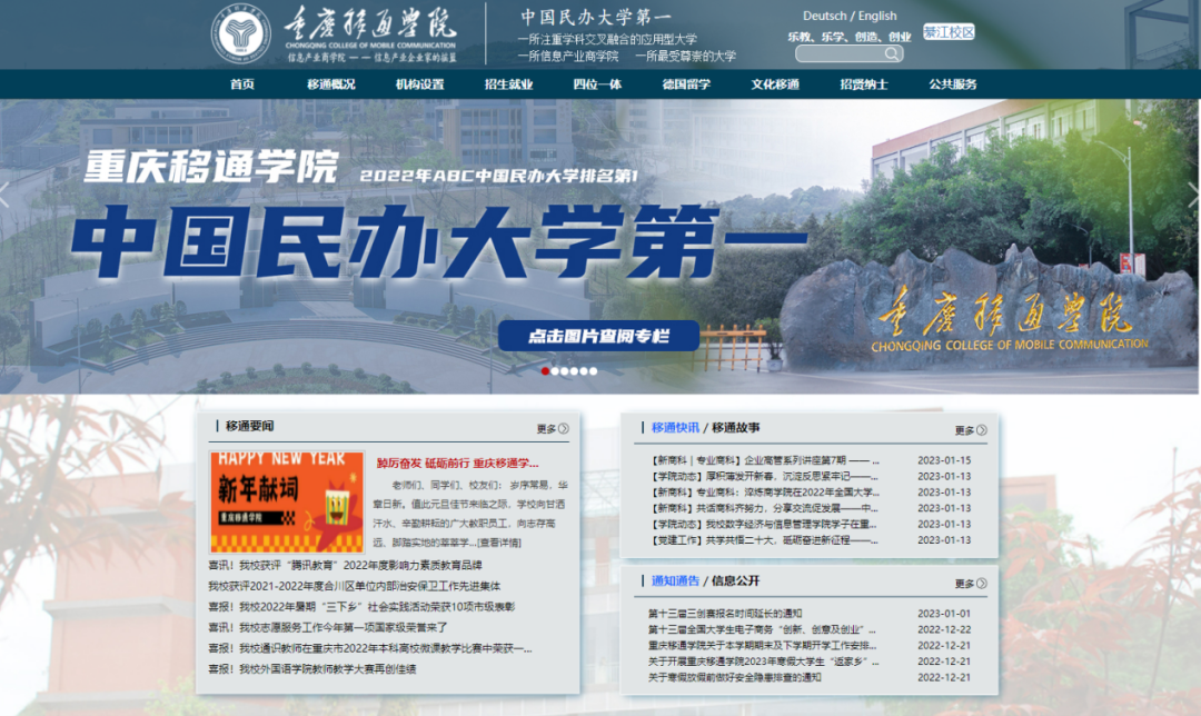 一元复始,万象更新。在过去的一年,品牌营销与新闻中心与全校各部门共同努力配合,开设了官网宣传提质的好局,非常感谢各部门的配合与支持,我们是书写移通故事的“主角”,我们是移通美好形象的传播者,也是关注移通一步一步走向中国民办大学第一的见证者与助力者。2023年,部门会重点围绕新官网建设持续打造学校官方最强发声平台,将全新的官网尽快呈现给大家,将更多有质量有深度的文章带给读者。