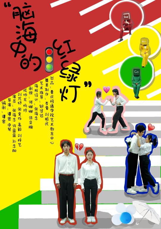 《脑海中的红绿灯》是我校大学生话剧团排练的原创实验剧。该剧讲述一对年轻的男女在红绿灯下一见钟情,为撮合二人相知相恋,红绿灯利用职务之便为其创造各种相处机会,在红绿灯的帮助下二人成为情侣。见证了无数幸福瞬间的红绿灯在N年后的某一天,目睹了男女的分离……该剧告诉我们,对于那些来到生命里的人和事我们尽全力珍惜,对于那些已经离开的,我们祝福和缅怀,生活总该要好好继续。
