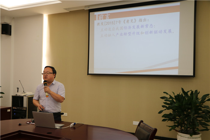 “通信与信息工程系自2015年开始,扩展和加强与行业、企业的联系,加强教育与社会生产实践相结合,在经过不断与企业的沟通交流,签订校企合作企业8家。”通信与信息工程系高飞副教授为大家介绍了通信与信息工程系在产教融合、协同创新方面所做的工作。高飞副教授也指出,目前通信与信息工程系在校企合作方面仍存在企业遴选数量类型少、合作的形式较为单一且内容不够丰富、学生参与热情不够等方面的问题,他建议学校在现有基础上加入职业教育、产业教育、创新教育、创业教育,建立校企一体、产学研一体的大型实验实训实习中心,构建功能集约、资源共享、开放充分、运作高效的专业类或跨专业类实验教学平台。