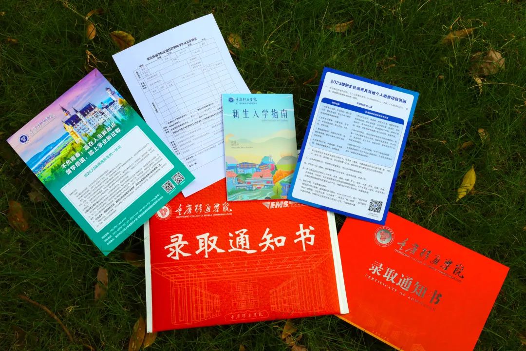 录取通知书、给2023级移通新生的一封信、新生入学指南、家庭经济贫困学生认定申请表、缴费说明。