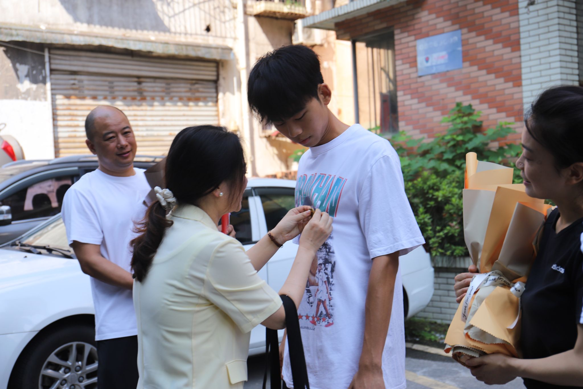 戏剧影视学院王芳院长为杨若愚同学佩戴上了学院的专属徽章,同时,还送上了戏剧影视学院为2023级大一新生设计的文创礼盒作品。王芳院长亲切的对他说道:“若愚,恭喜你,欢迎你成为我们戏影人。今天我代表学院为你送上两份礼物。第一份我将为你戴上我们学院的第一枚徽章。这是由你未来的老师亲手设计的院徽,希望这个徽章能够让你记住你和戏剧影视的相遇,也希望它成为陪伴你一生的光荣烙印。第二份礼物是咱们戏剧影视学院的老师和上一届师兄师姐共同完成的第一份IP设计作品,它是咱们戏剧影视学院的起点,也应该成为你的起点。希望下一次,你的学弟学妹们在入学时,手里握着的是你的作品。再次祝贺你。”