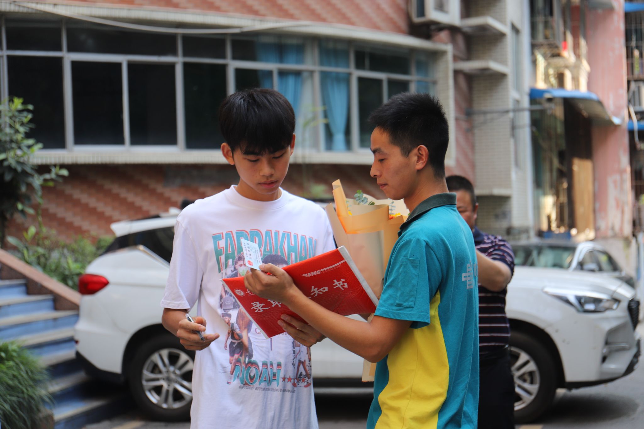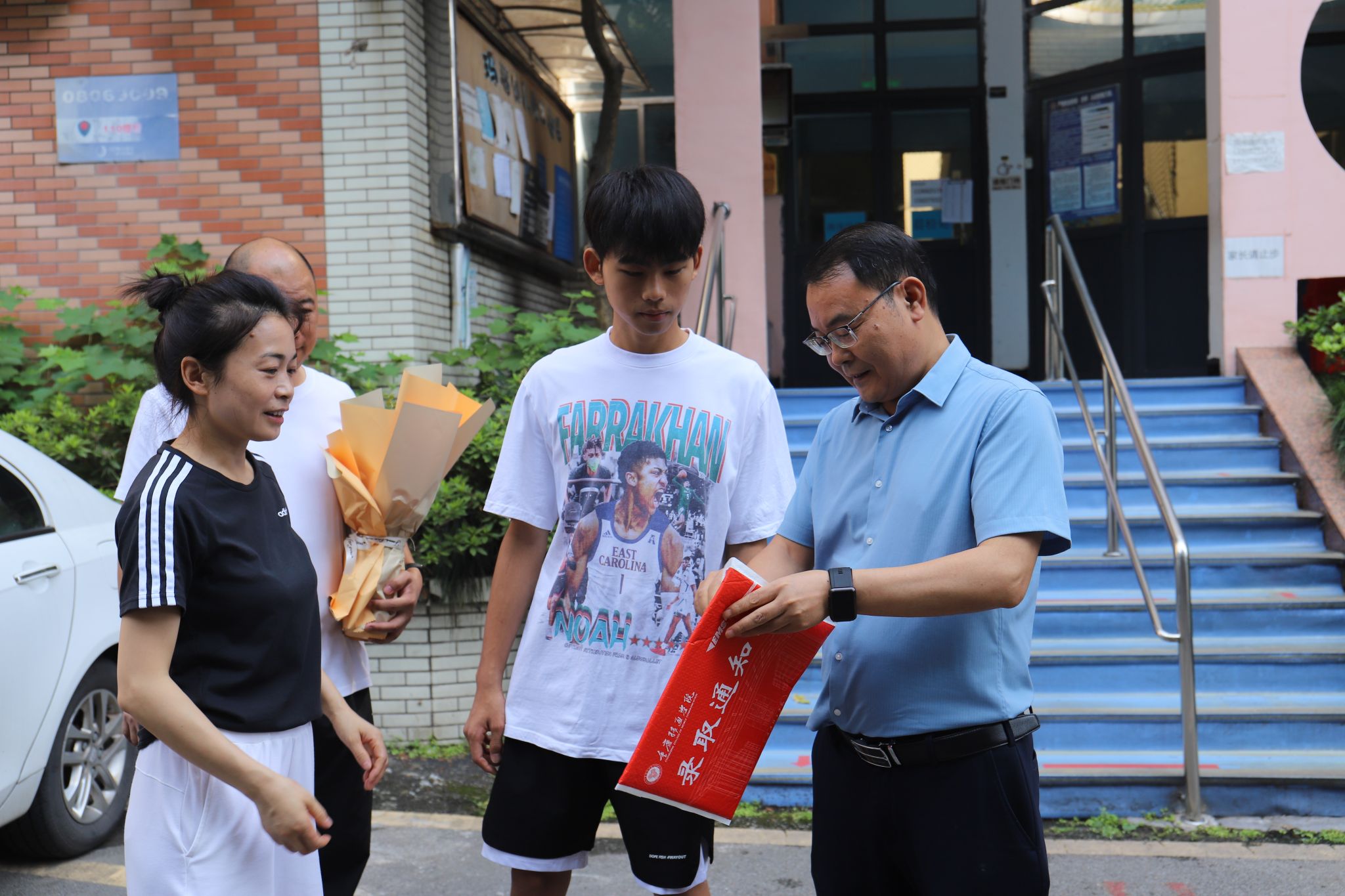 邮政的快递小哥将清晨的第一封邮件准时送达,在场的各位校领导陪同杨若愚同学等待接过。何先刚书记与杨若愚同学共同拆开期待已久的录取通知书。书记对杨若愚同学成为移通学院2023级新生表达了由衷的祝贺,同时也向杨若愚同学传递了一番鼓励和勉励:“大学并不只是一个延续中学学习的地方。大学,是一个全新的起点。在这里你需要自我约束和激励,平衡好学习和生活,独立完成四年的学业。希望你勇于探索、积极参与学校的各种社团、志愿实践活动,不断拓展知识边界,锻炼自己的专业技能和领导能力。相信通过在移通的这四年,你将取得更加出色的成绩,为未来的发展打下坚实的基础。”
