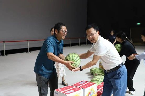 随后,彭鸿斌董事长、吕翊校长、王永周常务副校长为暑期坚守在一线的教职工们送去消暑慰问物资,感谢教职工们在炎热的暑期放弃休息、坚守岗位,并充分肯定了教职工们在暑假期间为学校发展所付出的辛勤努力。