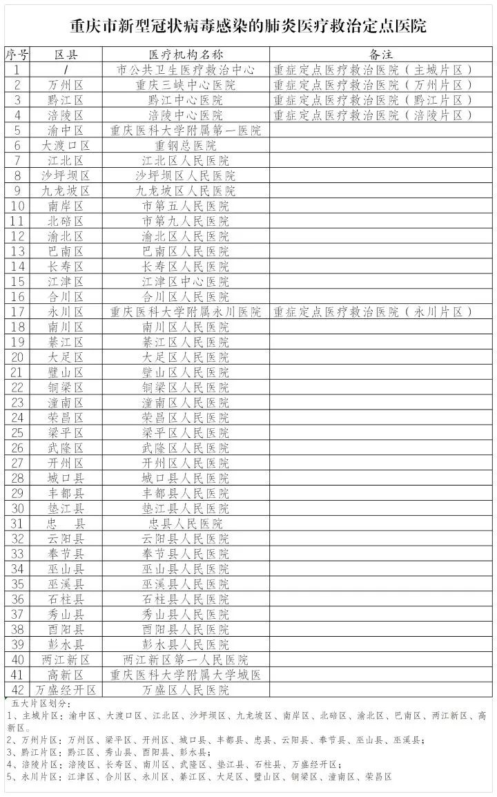 重庆市新型冠状病毒感染的肺炎医疗救治定点医院